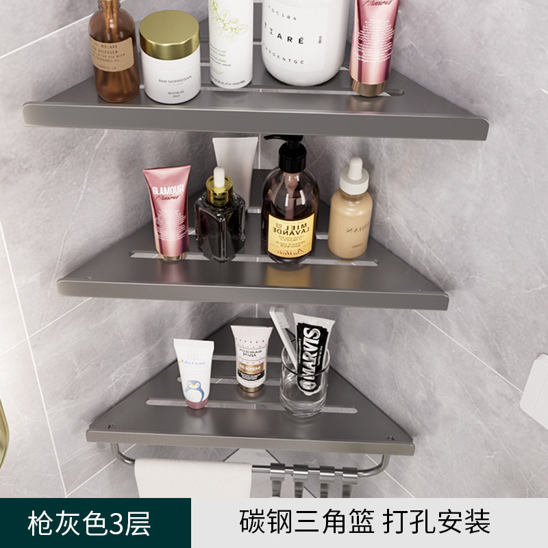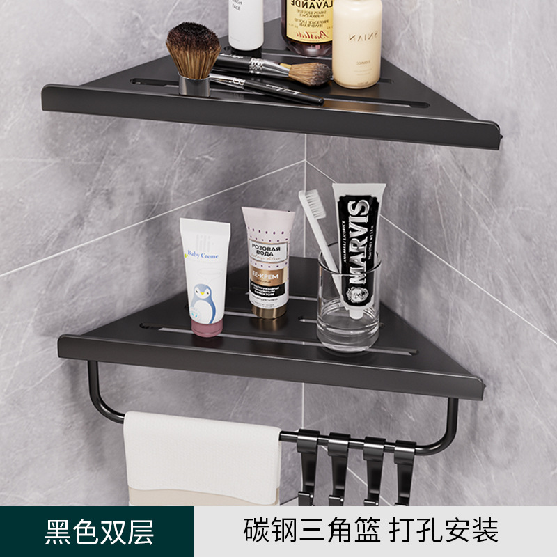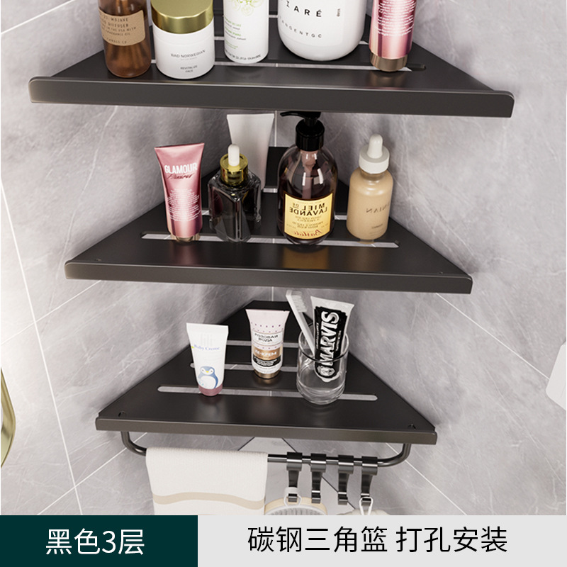 화장실 욕실 펀치 프리 녹 화장품 보관 랙 벽걸이 형 배수 중공 탄소 강철 저장 랙스토어 가기