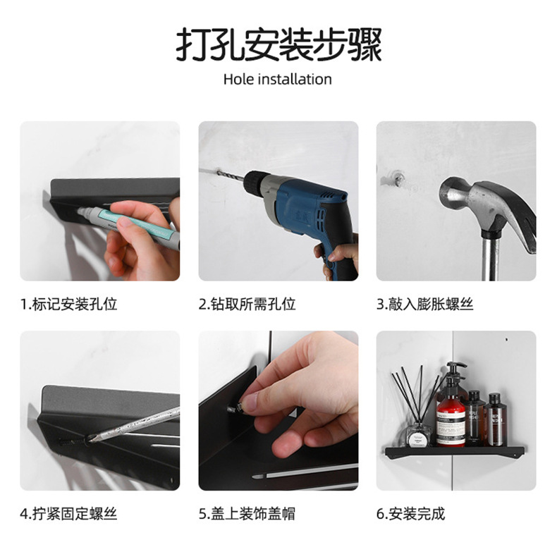 화장실 욕실 펀치 프리 녹 화장품 보관 랙 벽걸이 형 배수 중공 탄소 강철 저장 랙