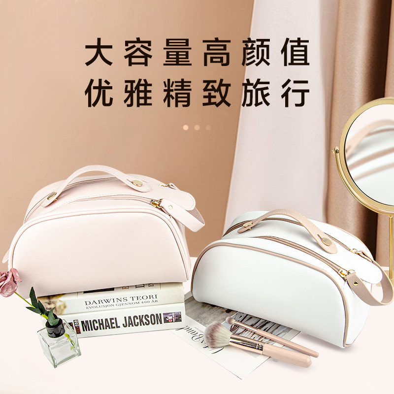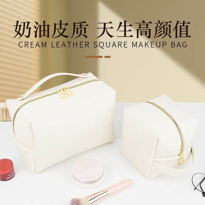 自创新款奶油感pu高级化妆包 防水多功能手提数码化妆品收纳包