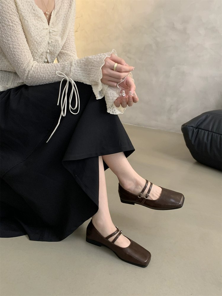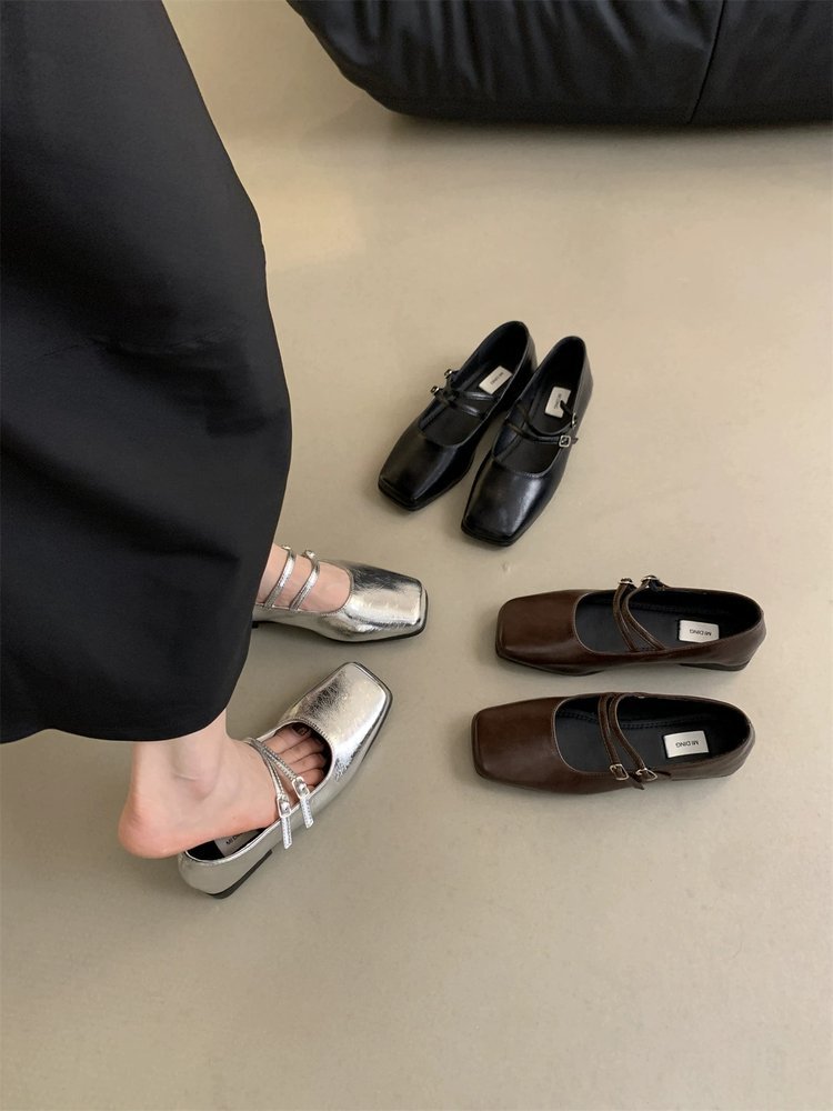 아만노 프렌치 스타일 여성용 신발 신상 봄 가을 캐주얼 패션 여름 플랫 슈즈 우아한 스퀘어 토 메리제인 슈즈스토어 가기