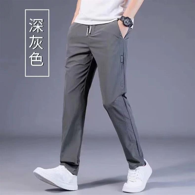 아이스 실크 바지 남성용 얇은 스트레치 캐주얼 바지 남성용 여름 루즈 스포츠 속건성 다용도 트렌디 스트레이트 팬츠스토어 가기