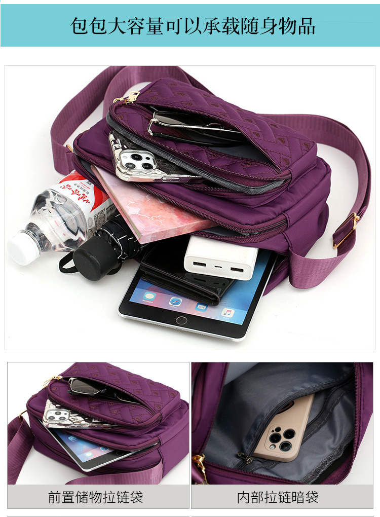 여성 가방 나일론 작은 사각형 가방 캐주얼 여성 어깨 메신저 가방 중년 어머니 가방 다층 휴대 전화 가방 도매 국경스토어 가기