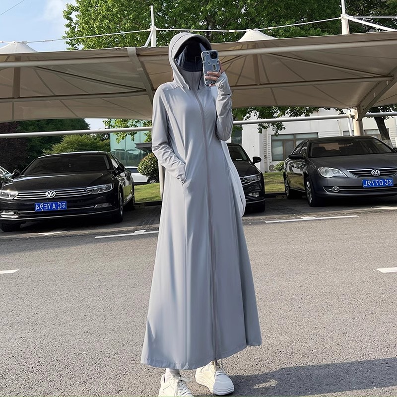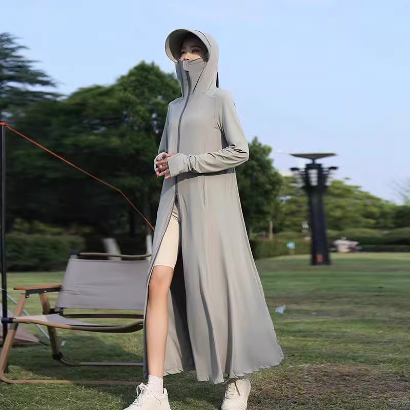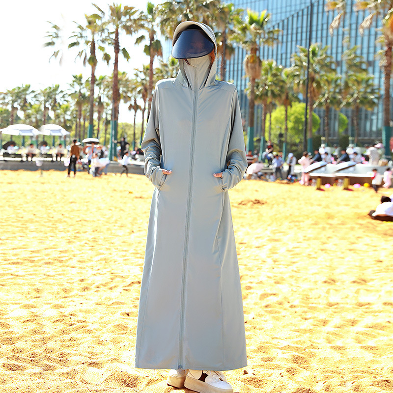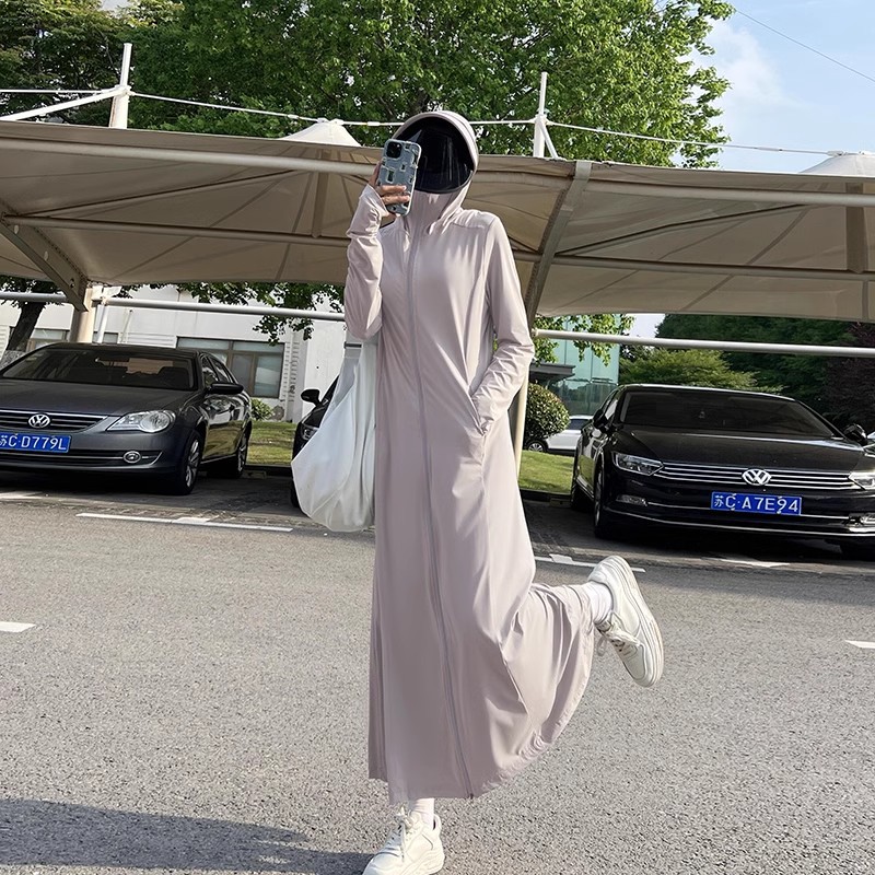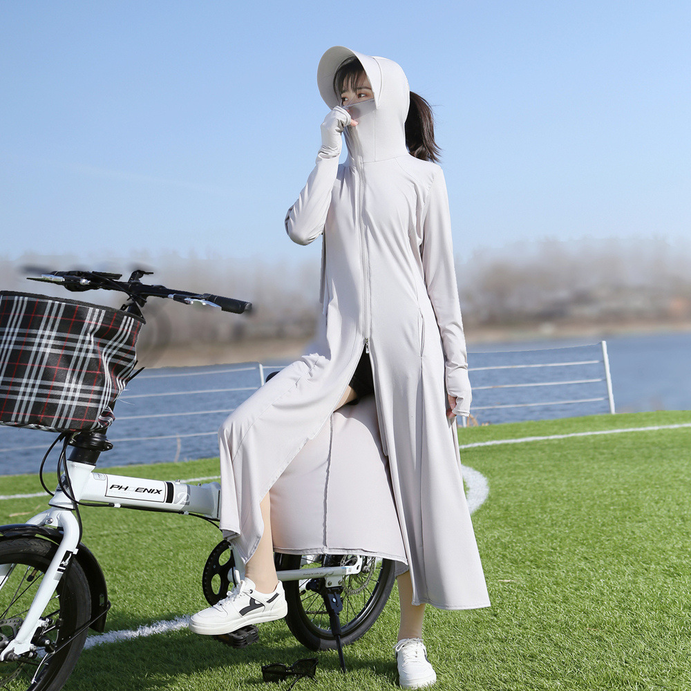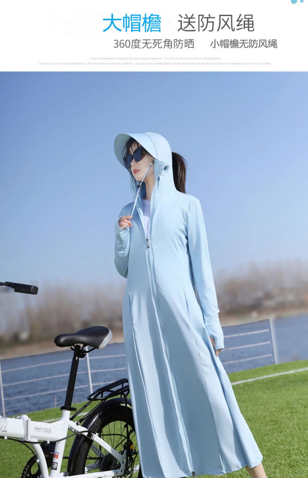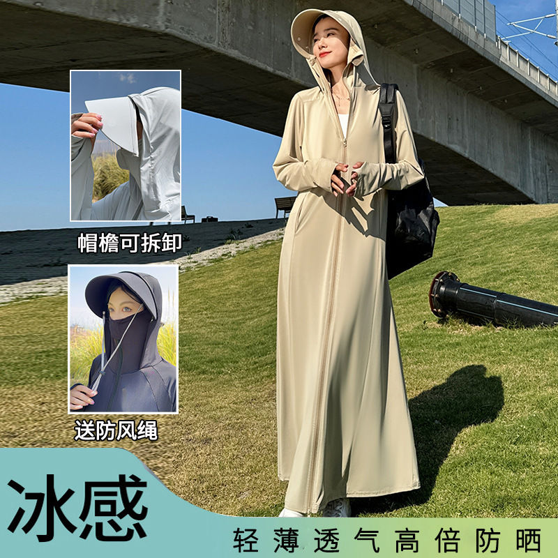 여성의 태양 보호 의류 여름 2025 새로운 긴 전신 슬림 핏 아이스 실크 해변 태양 보호 의류 자외선 방지 블라우스 얇은