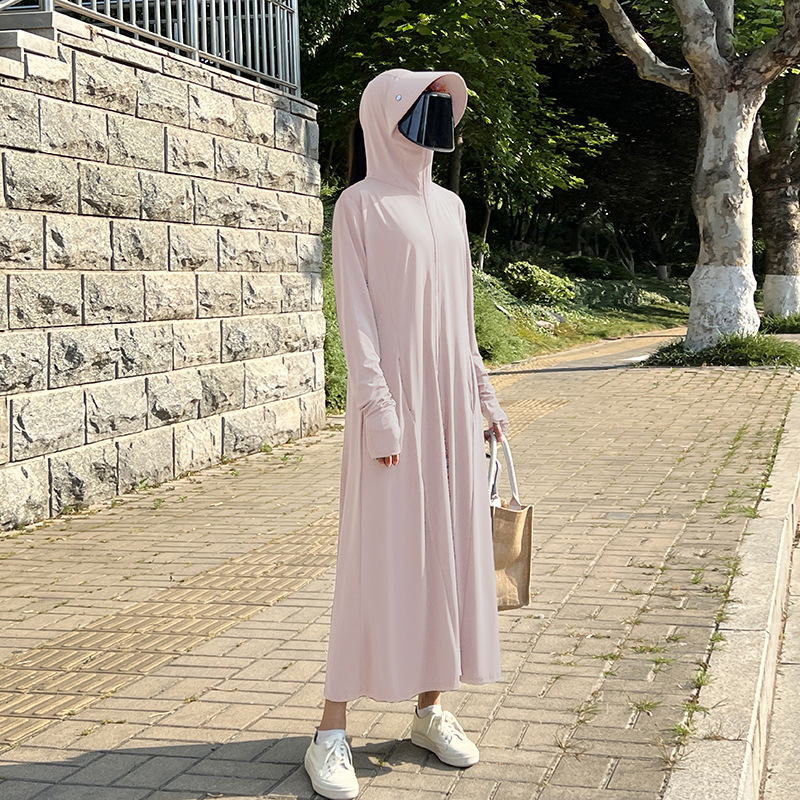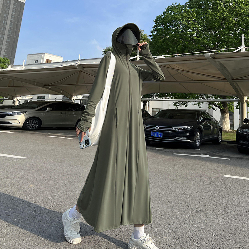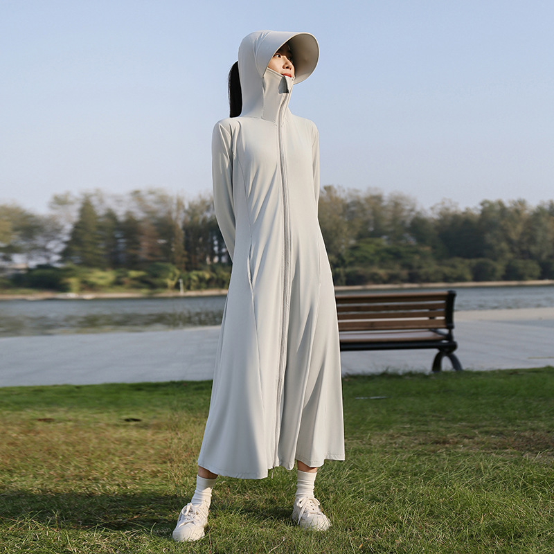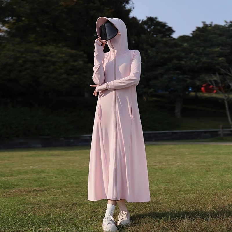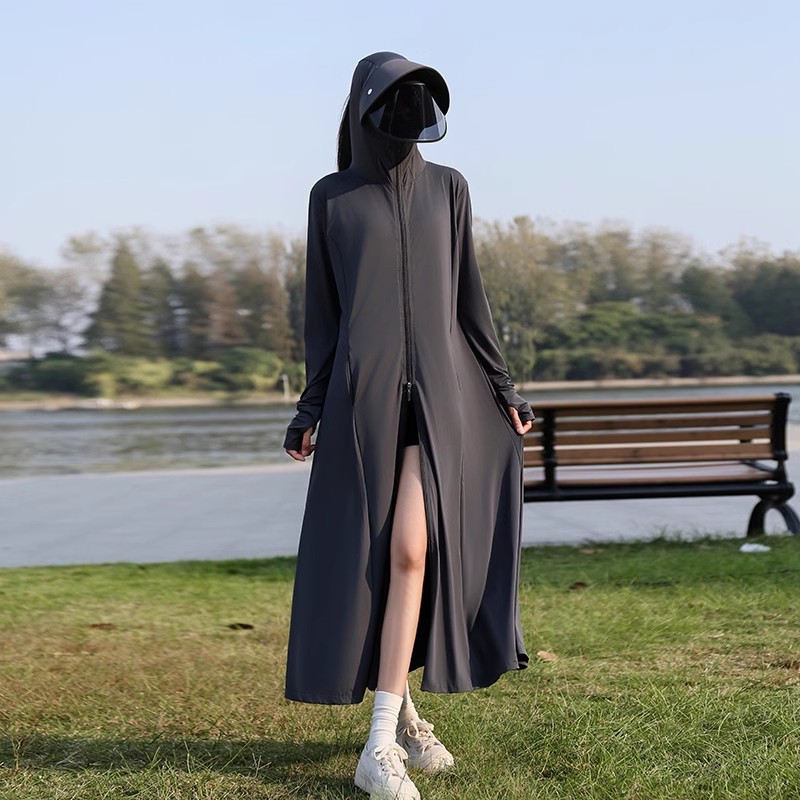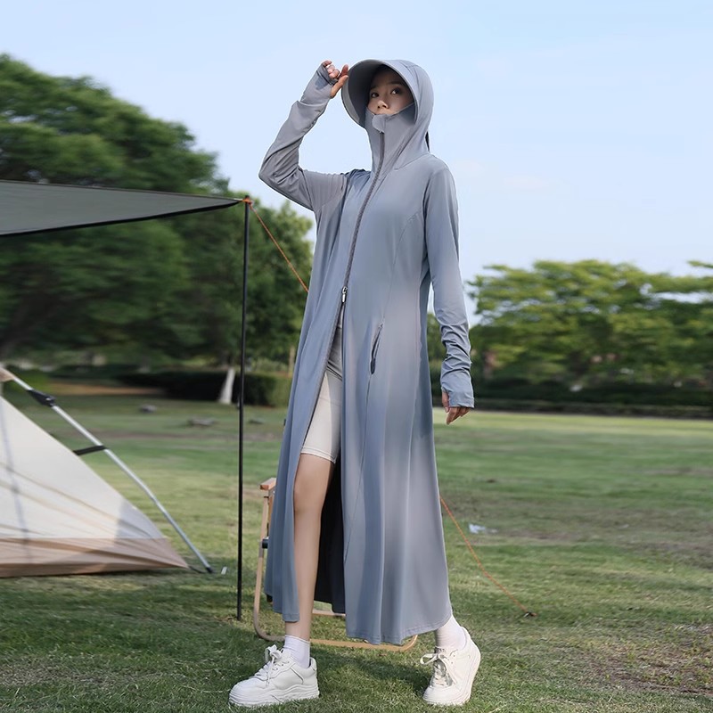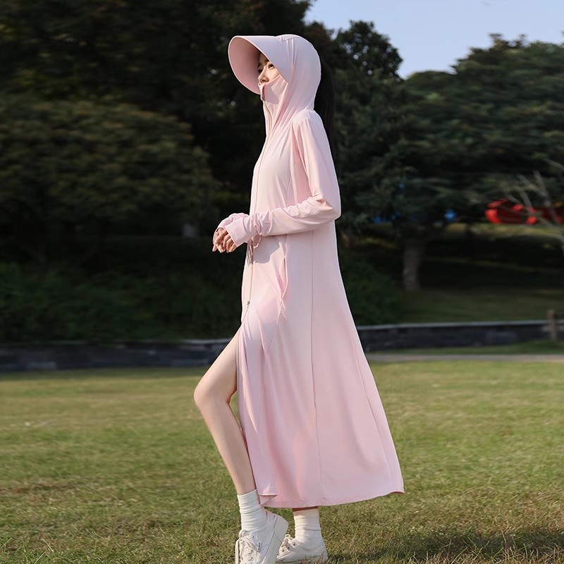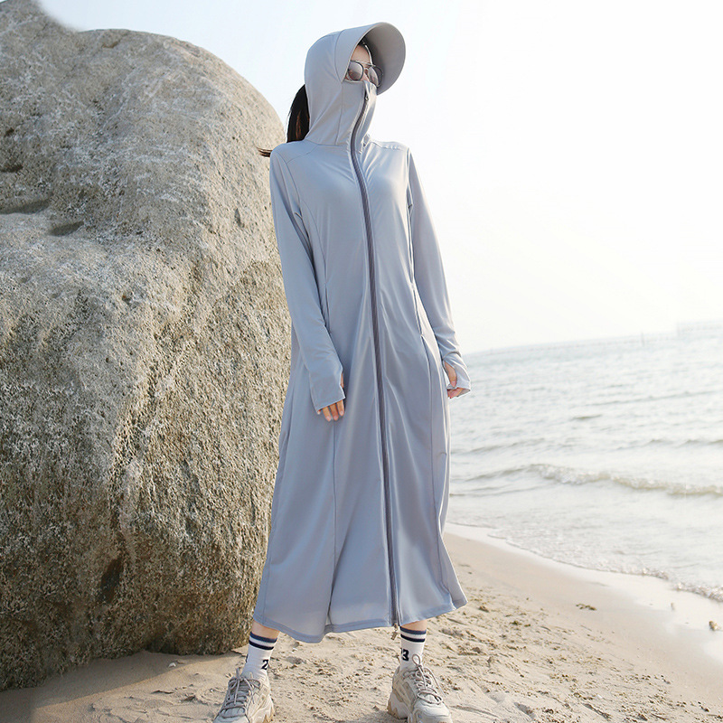여성의 태양 보호 의류 여름 2025 새로운 긴 전신 슬림 핏 아이스 실크 해변 태양 보호 의류 자외선 방지 블라우스 얇은