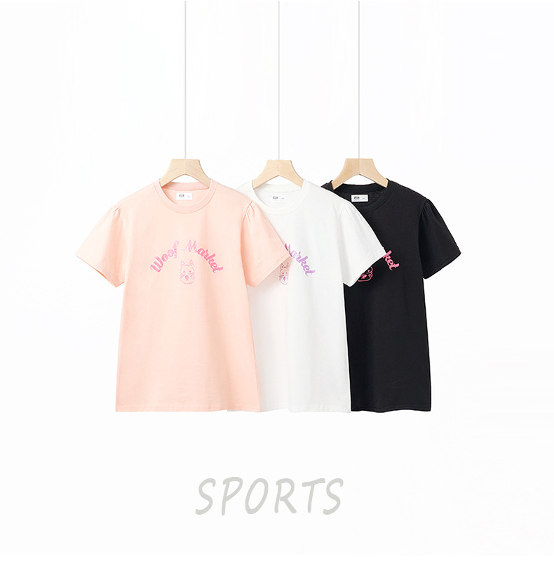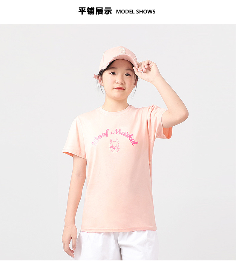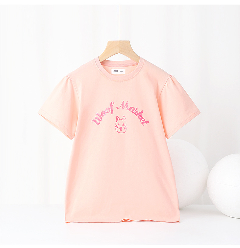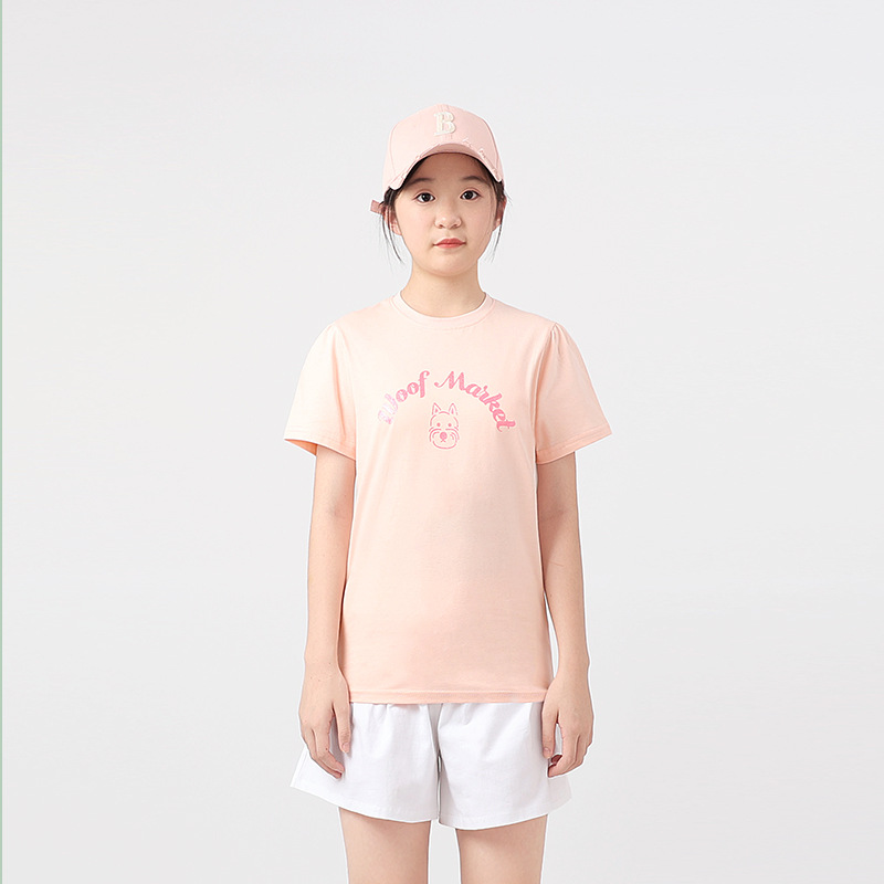 여름 어린이 티셔츠 한국식 신간 반팔 중견 어린이 통기성 트렌디 프린트 탑 걸스 반팔 티셔츠스토어 가기