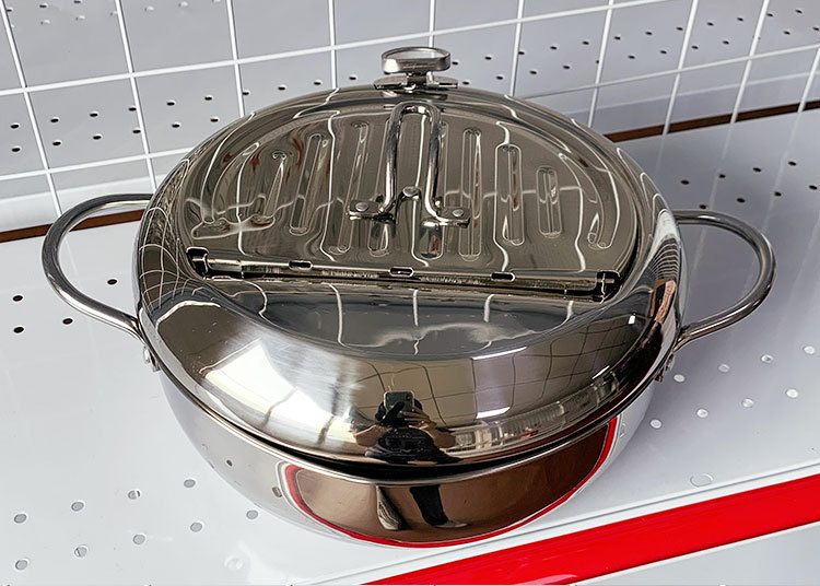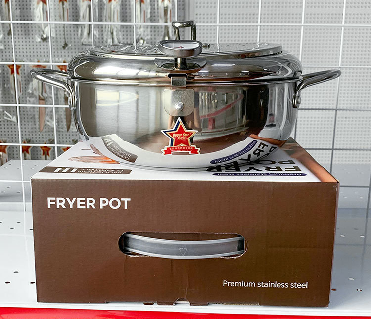 제조업체 도매 스테인리스 튀김냄비 가정용 두꺼운 무코팅 필터망 온도계 내장 냄비 온도 조절 가능 튀김냄비스토어 가기