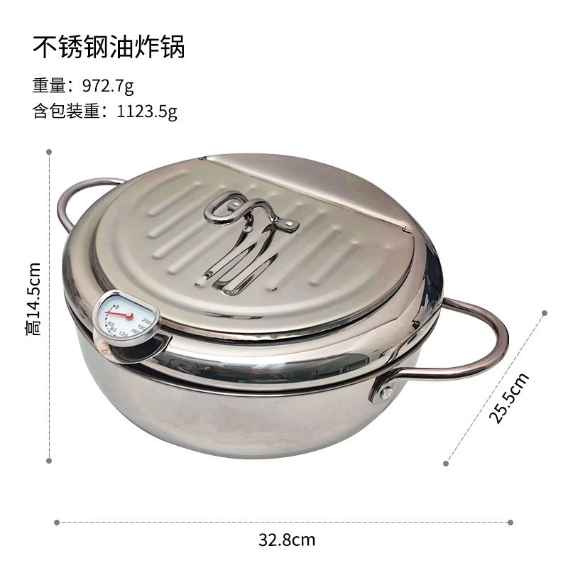 제조업체 도매 스테인리스 튀김냄비 가정용 두꺼운 무코팅 필터망 온도계 내장 냄비 온도 조절 가능 튀김냄비