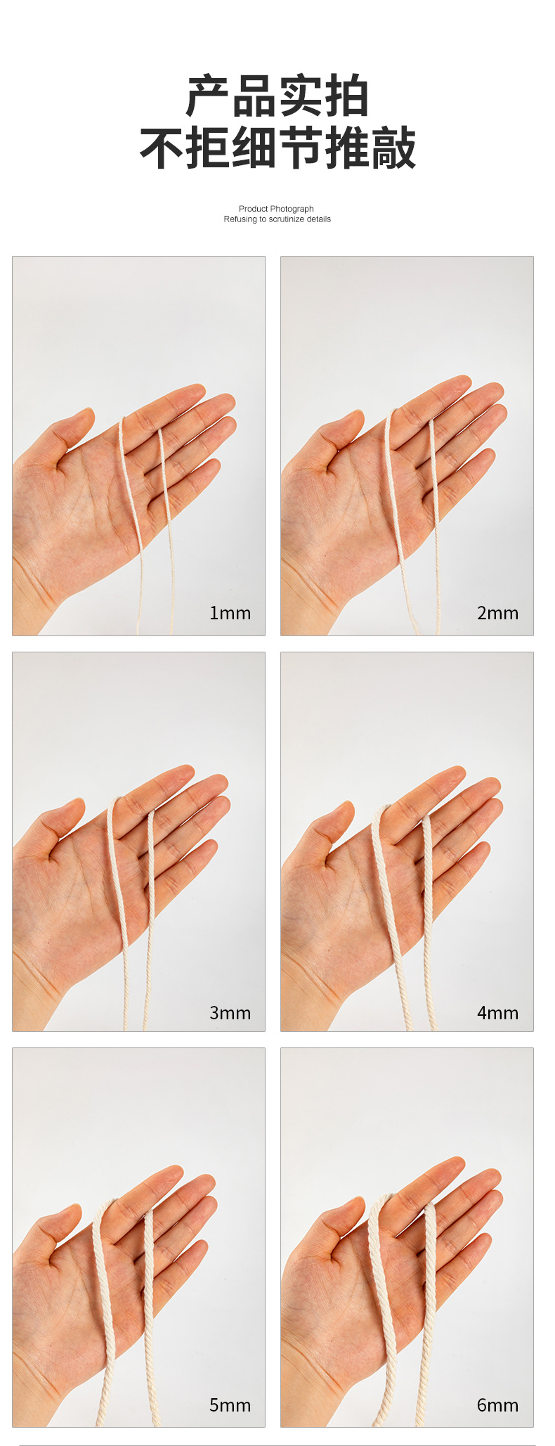 베이지 코튼 로프 제조 업체 도매 멀티 사양면 로프 바인딩 로프 1-10mm 손으로 짠 로프 태피스트리 태그스토어 가기