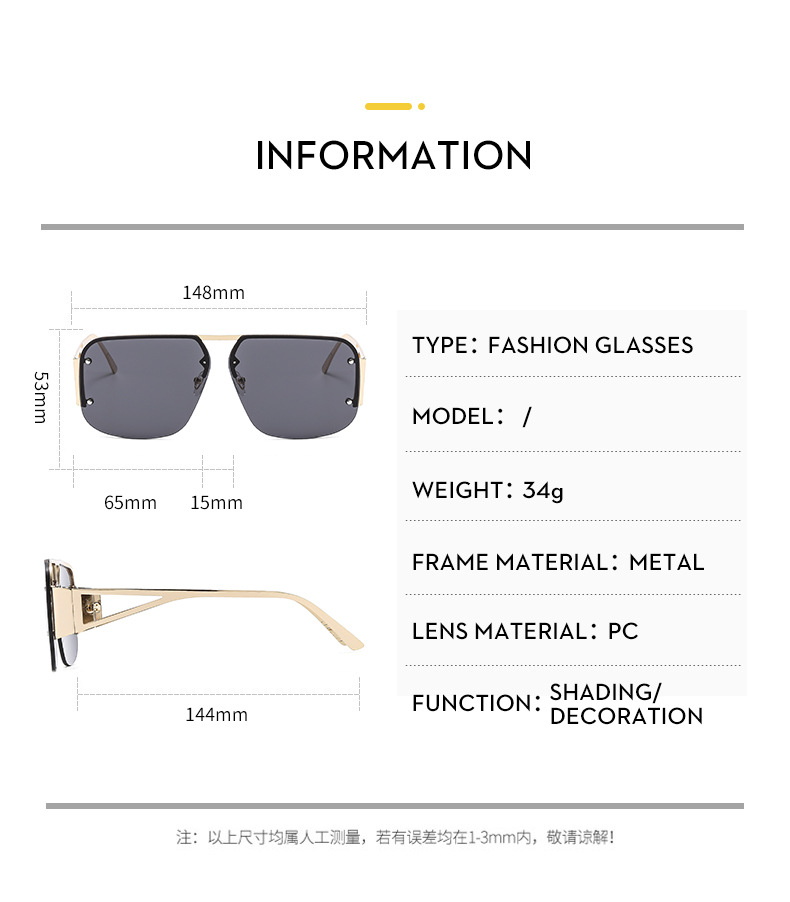 고급 질감 금속 하프 프레임 선글라스 국경 유럽 및 미국 남성과 여성의 선 스크린 Ins 인터넷 연예인 선글라스 트렌디 한 태양 눈