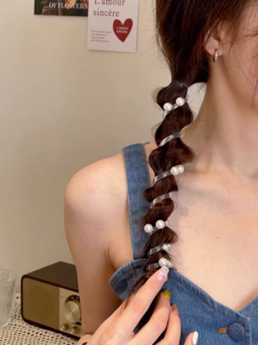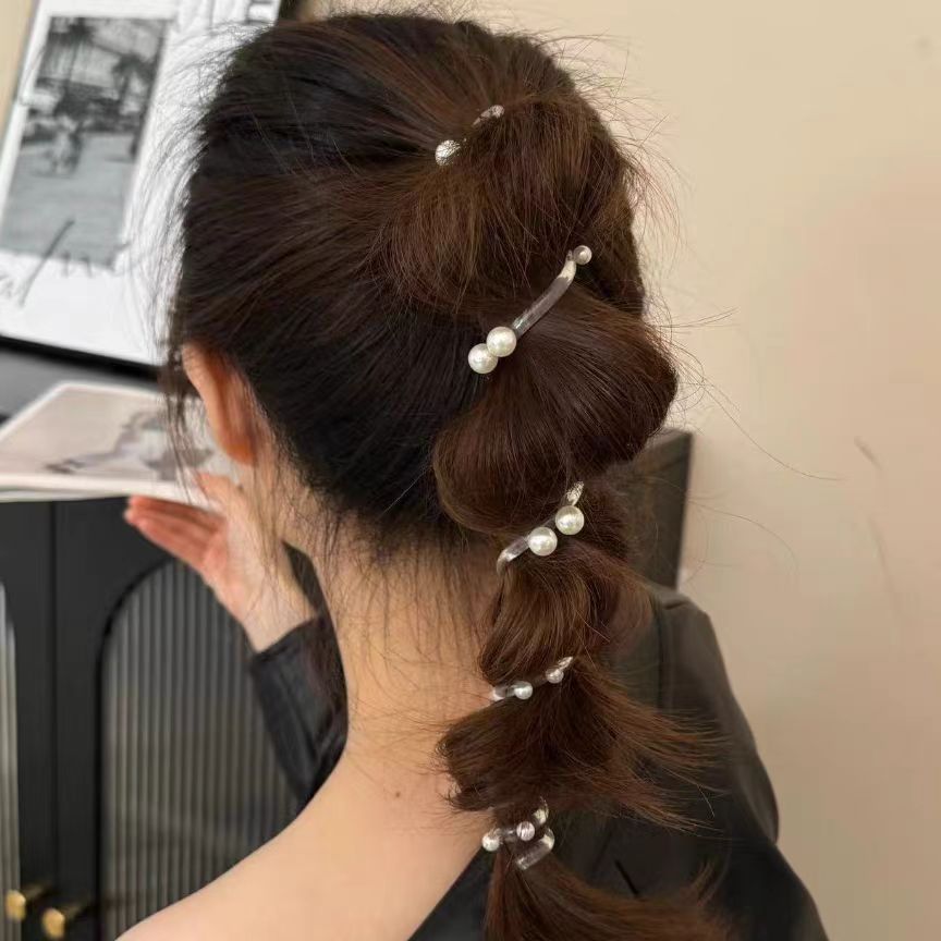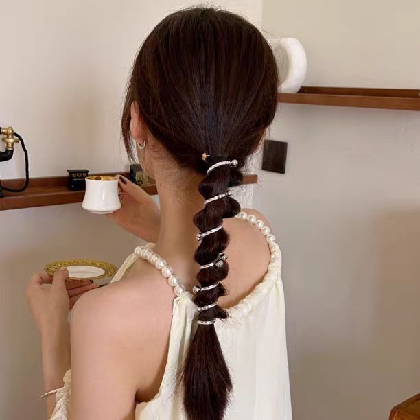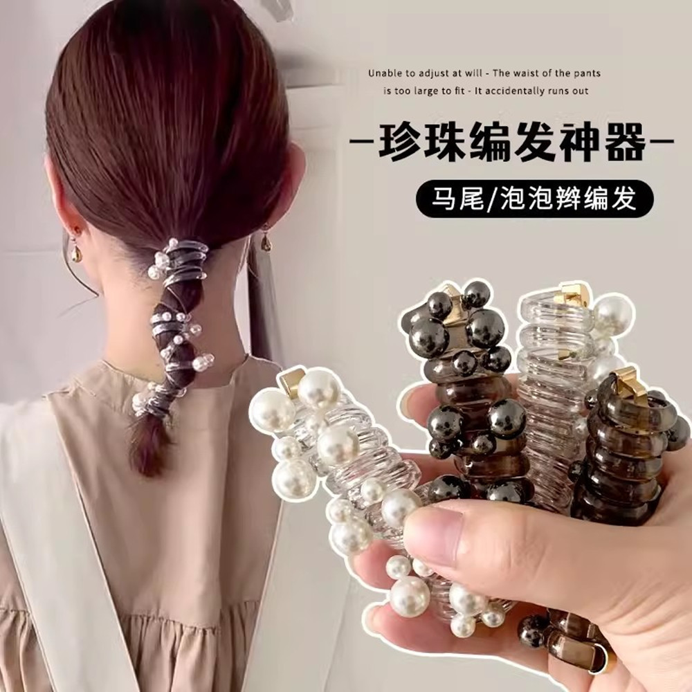 한국 스타일 꼰 헤어 전화 라인 헤어 링 비드 헤드 로프 높은 탄성 높은 포니 테일 기질 버블 꼰 헤어 아티팩트 헤드 드레스