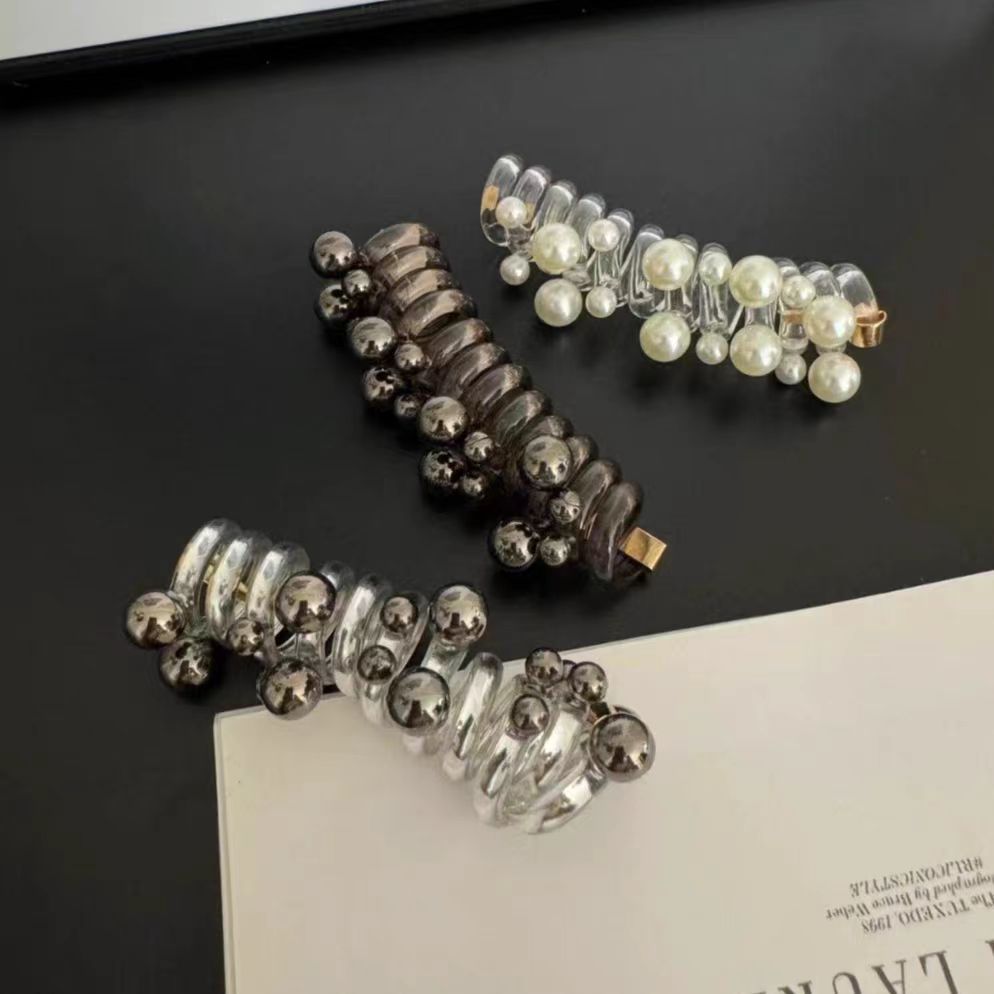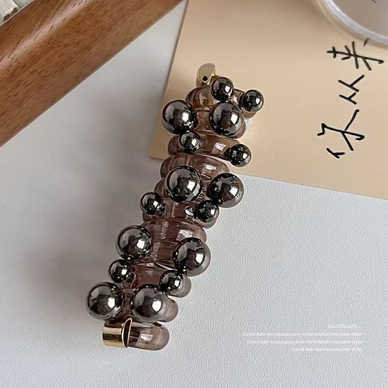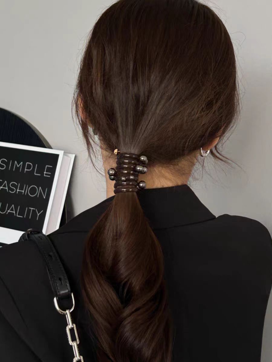 • 브라운 그레이 비즈 전화 코드 머리띠