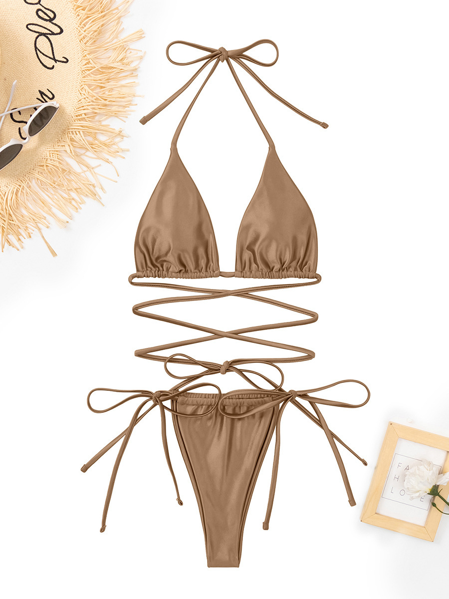 2024 새로운 유럽 및 미국 수영복 여성 아마존 국경 간 여성 스플릿 타이트 솔리드 컬러 섹시 비키니 수영복