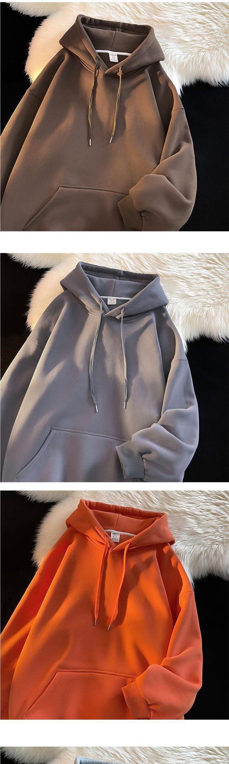 다크 그린 솔리드 컬러 후드 기모 스웨트 셔츠 남성 가을 겨울 기본 오버 사이즈 새로운 캐주얼 코트스토어 가기