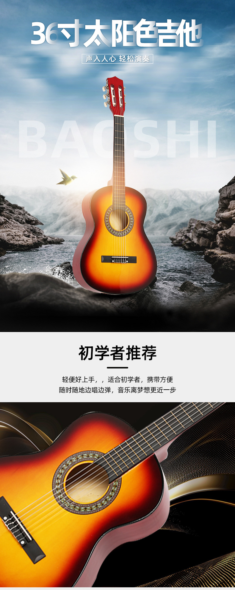 36inch 태양색 기타 가공 가능한 목재 남녀 초보자용 포크 기타 인기 우쿨렐레 악기스토어 가기