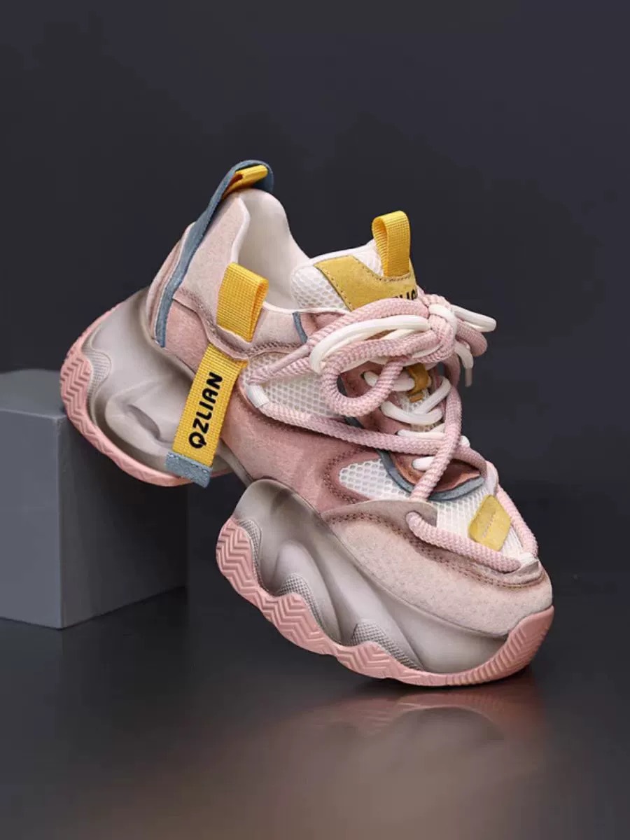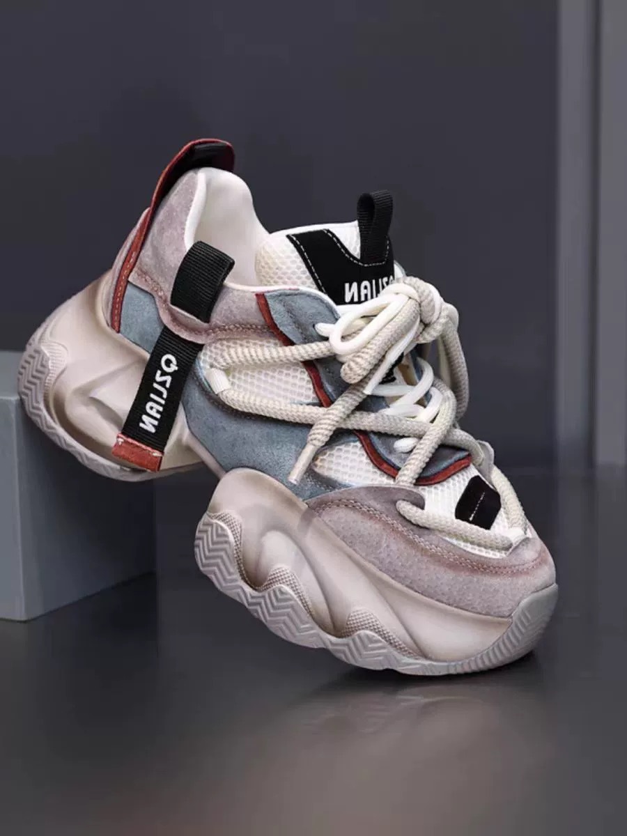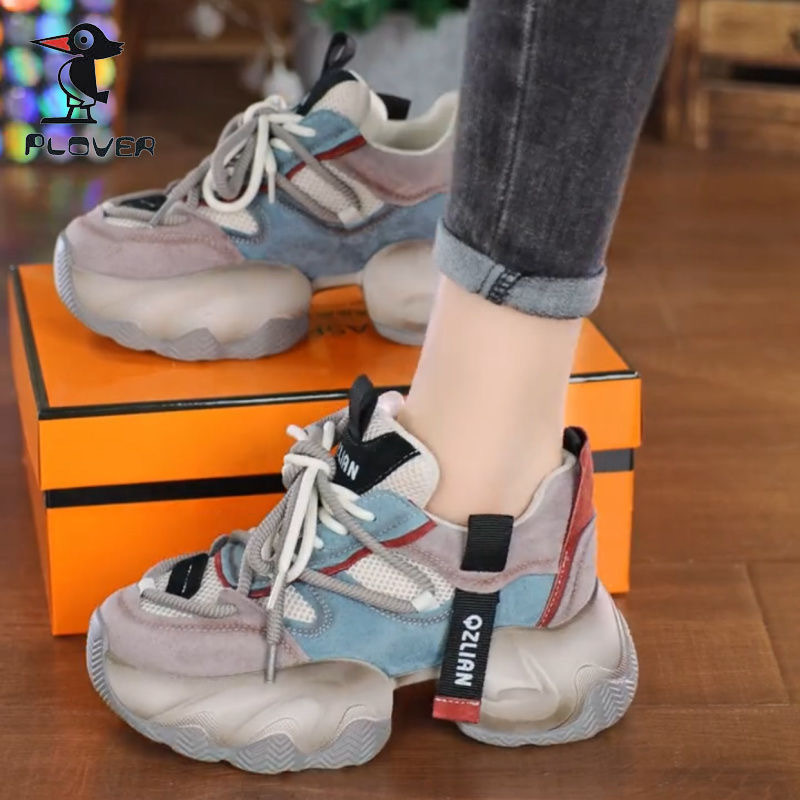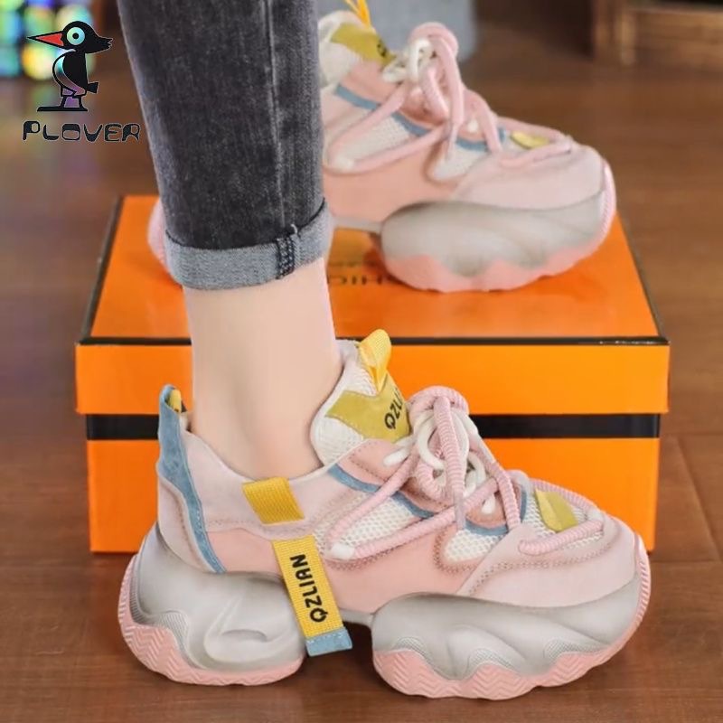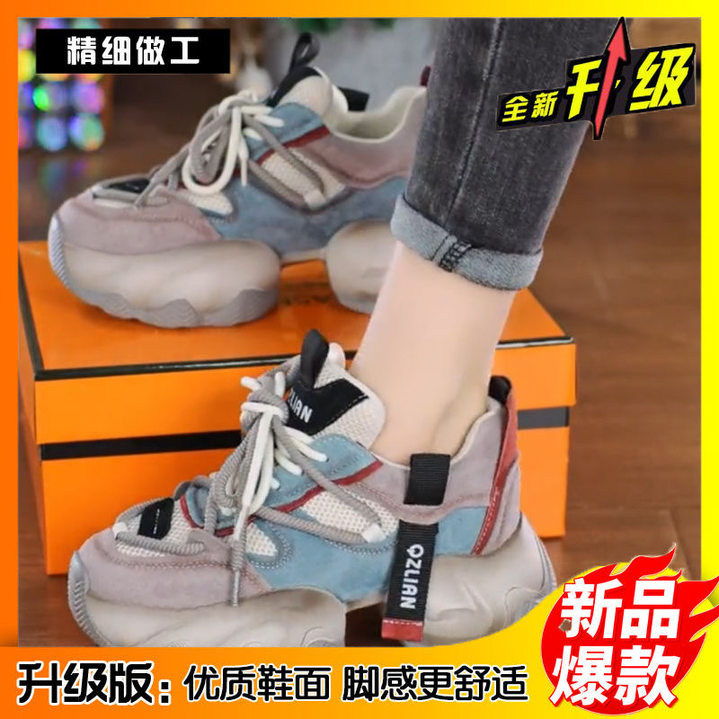 토레 신발 여자 2024 년 여름 새로운 올 매치 폭발 두꺼운 솔 증가 메쉬 통기성 여성 신발 캐주얼 운동화
