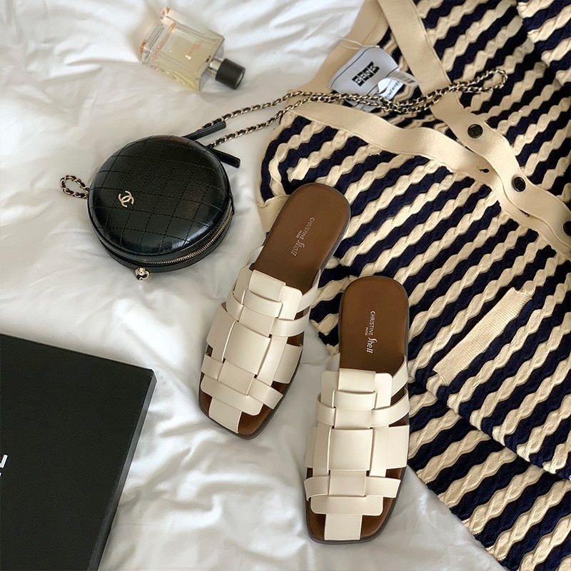 [Sheii Su Yinyin] 여름에 입을 수있는 여성을위한 약간 편안한 ~ 한국 로마 짠 패션 반 썰매 플랫 슬리퍼스토어 가기