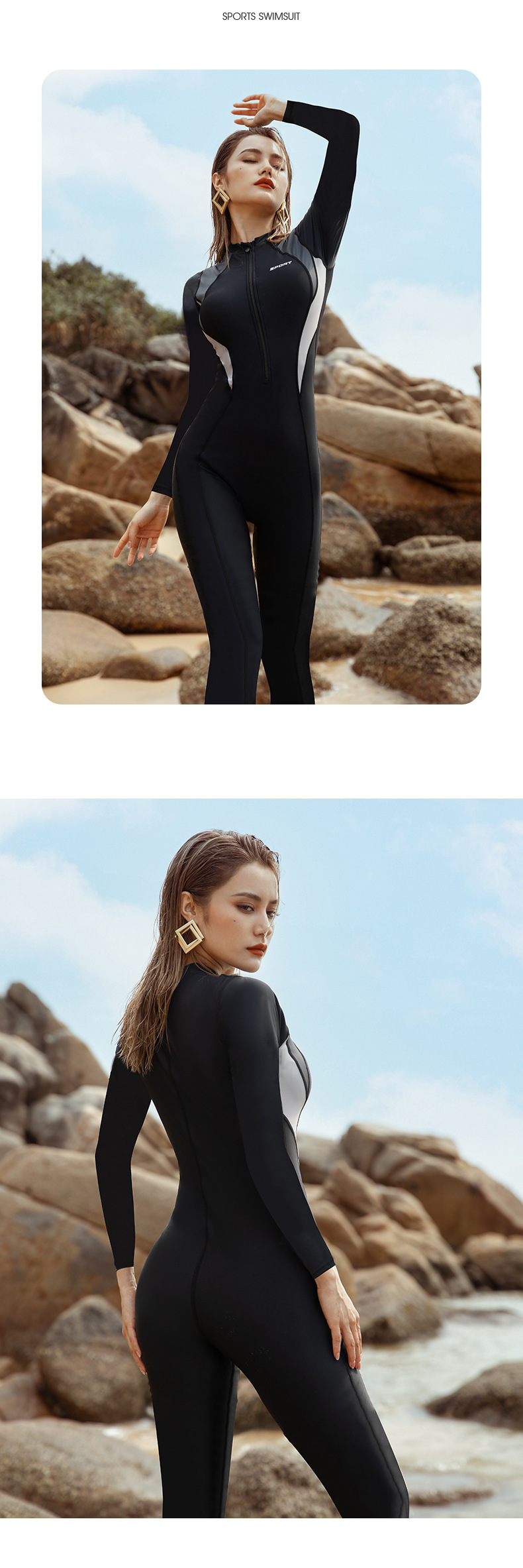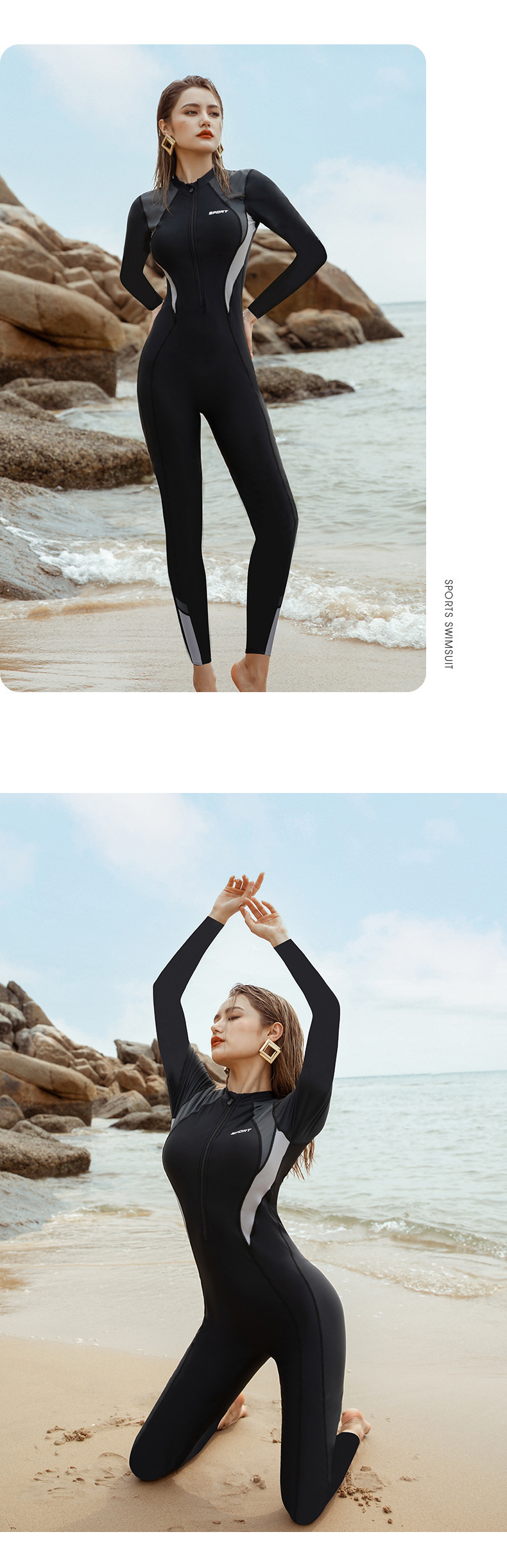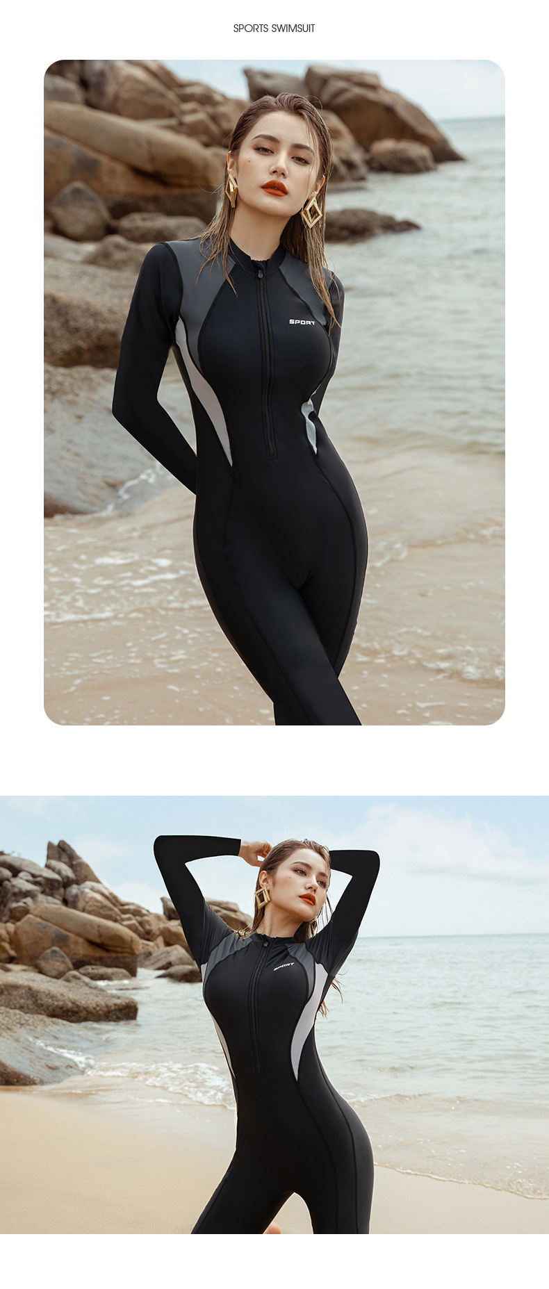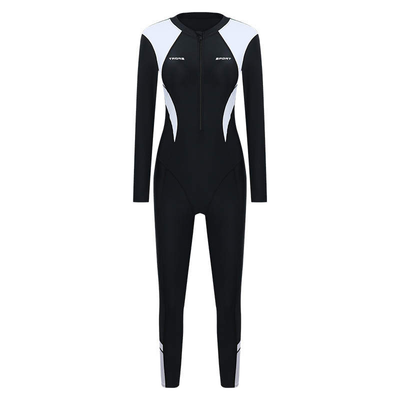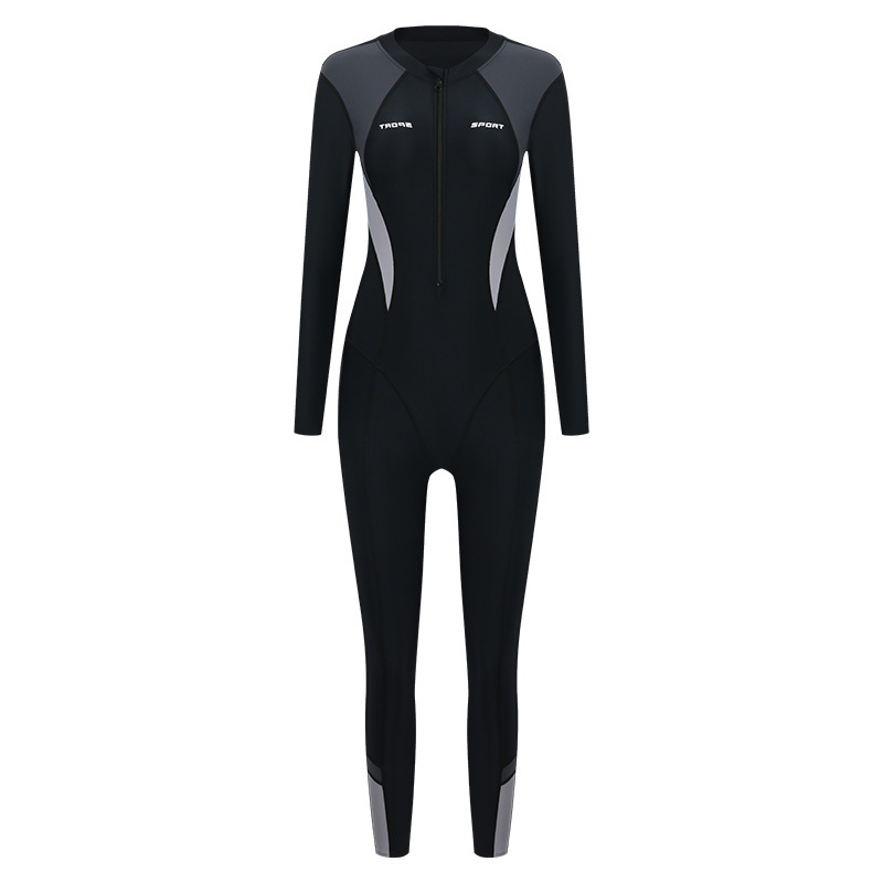 새로운 스포츠 수영복 여성 원피스 수영복 긴팔 바지 선스크린 슬리밍 원피스 플러스 사이즈 여성 다이빙 세트