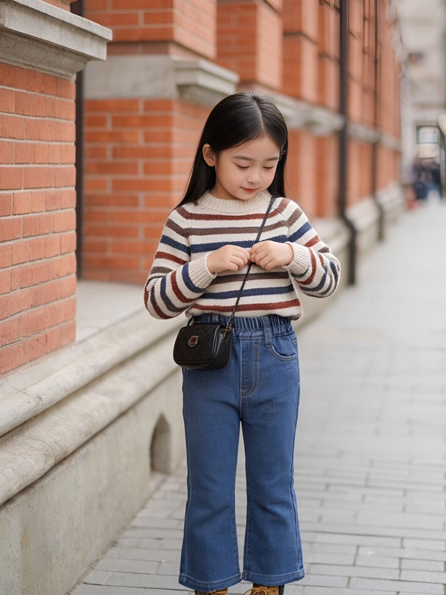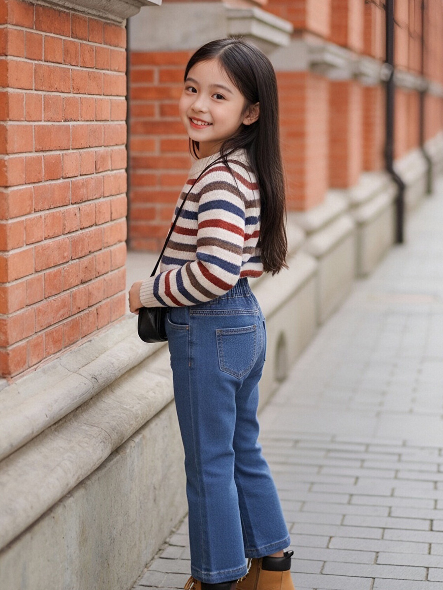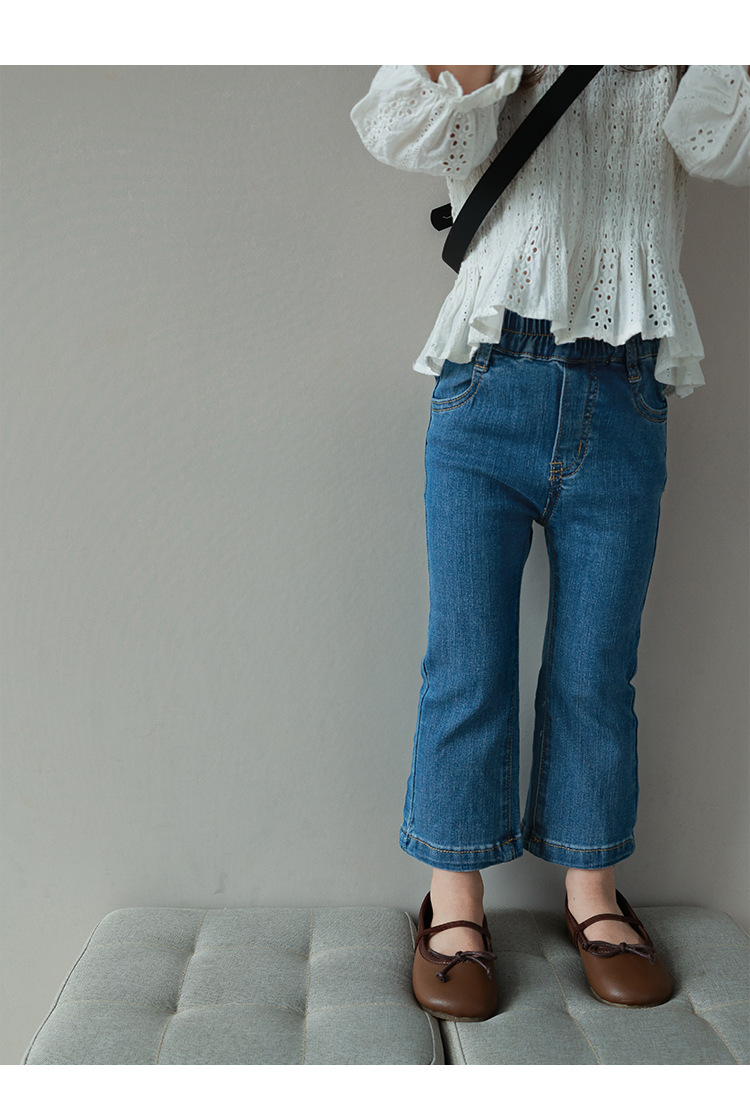 MDD 여아 봄 가을 2024 봄 신상 아동 청바지 여아 한국 스타일 중소형 아동 슬림핏 스트레치 플레어 팬츠