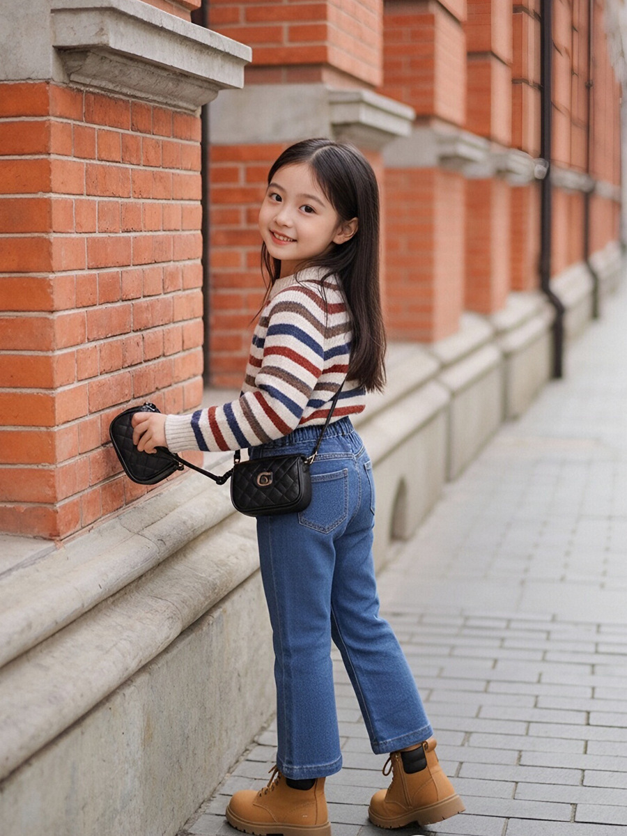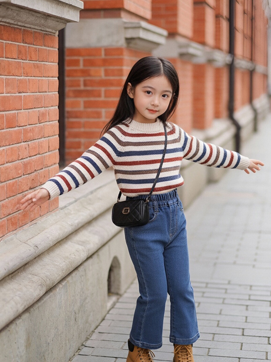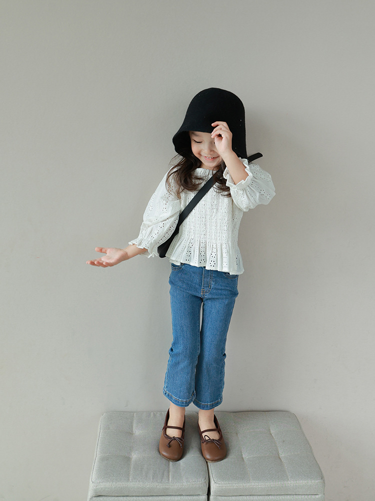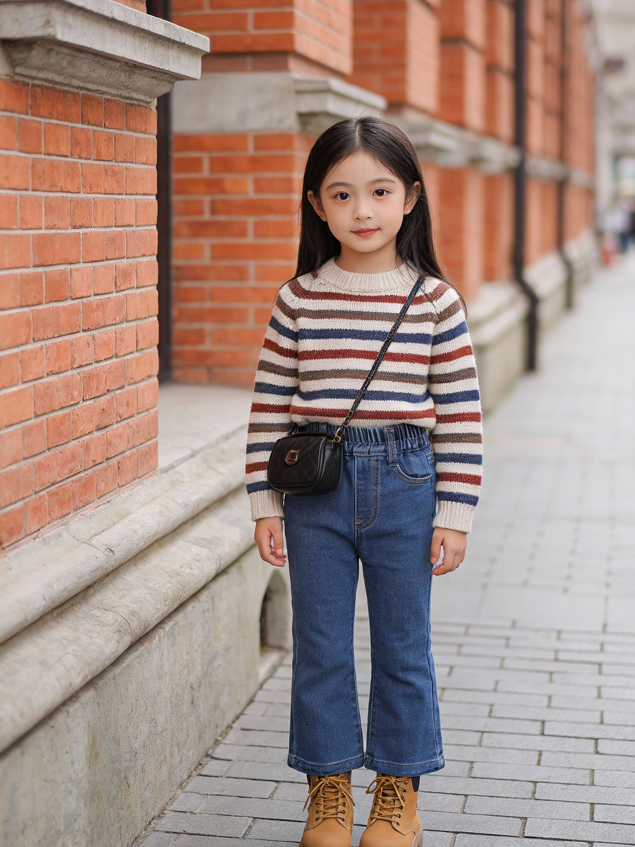 MDD 여아 봄 가을 2024 봄 신상 아동 청바지 여아 한국 스타일 중소형 아동 슬림핏 스트레치 플레어 팬츠