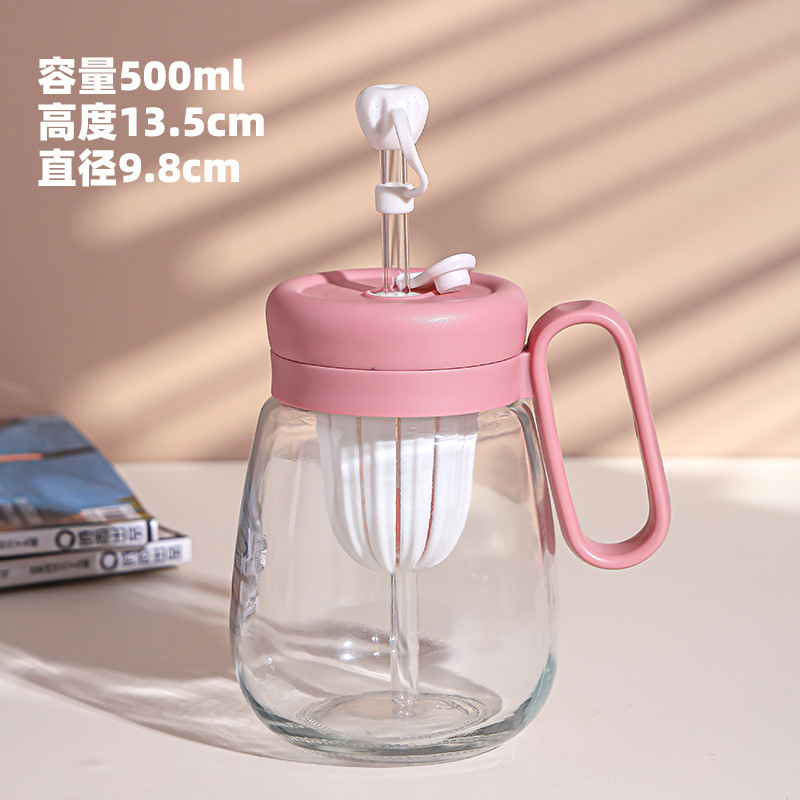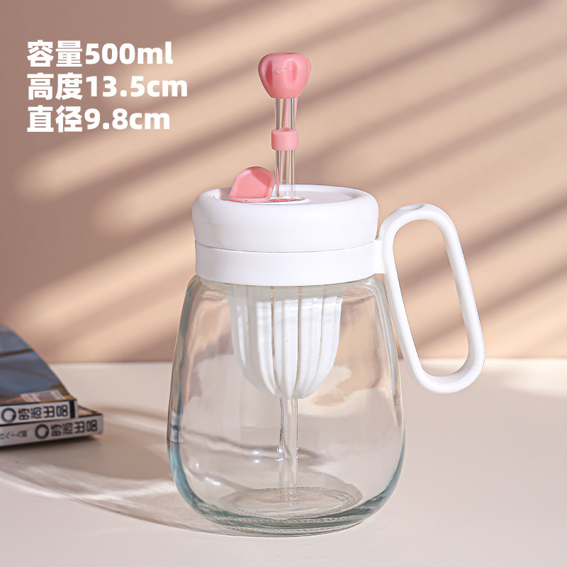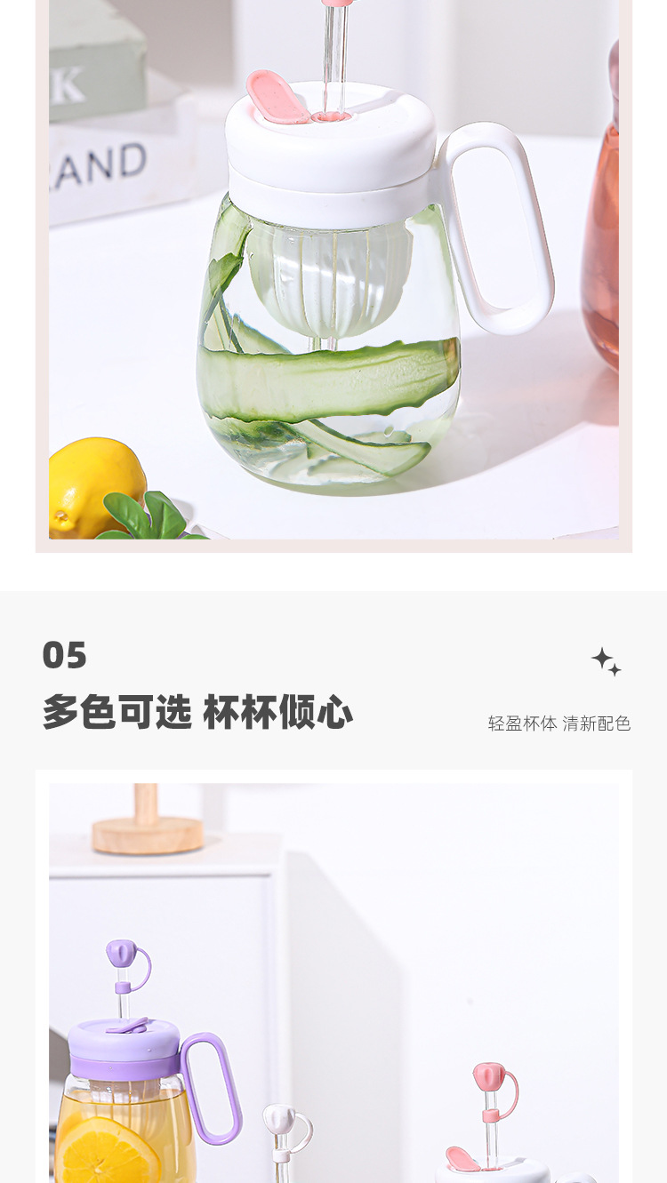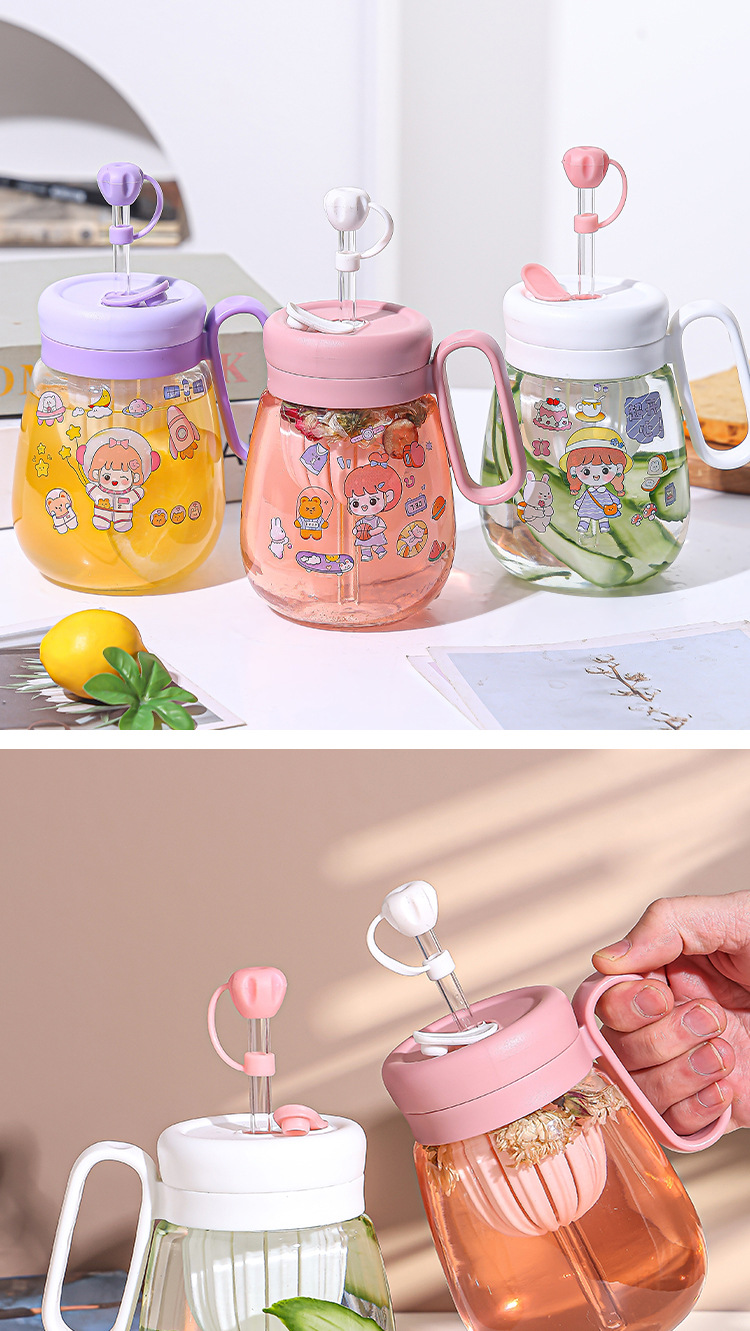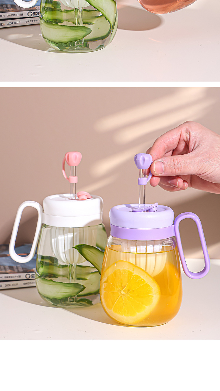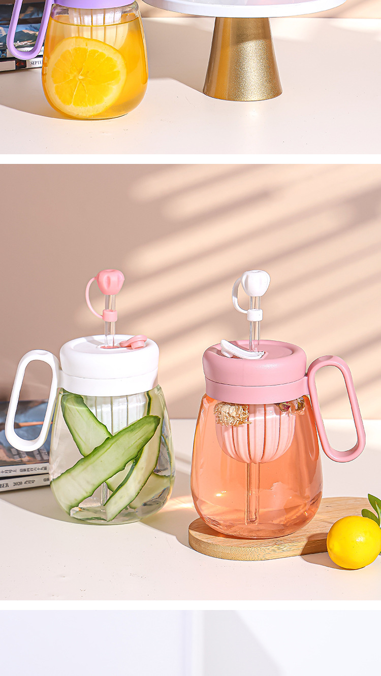 새로운 고 가치 소녀 휴대용 차 분리 컵 큰 용량 핸들 유리 흡입 튜브 컵 지상 푸시 선물 컵스토어 가기