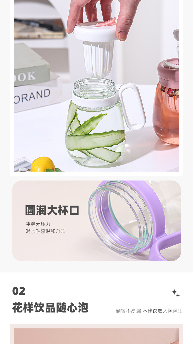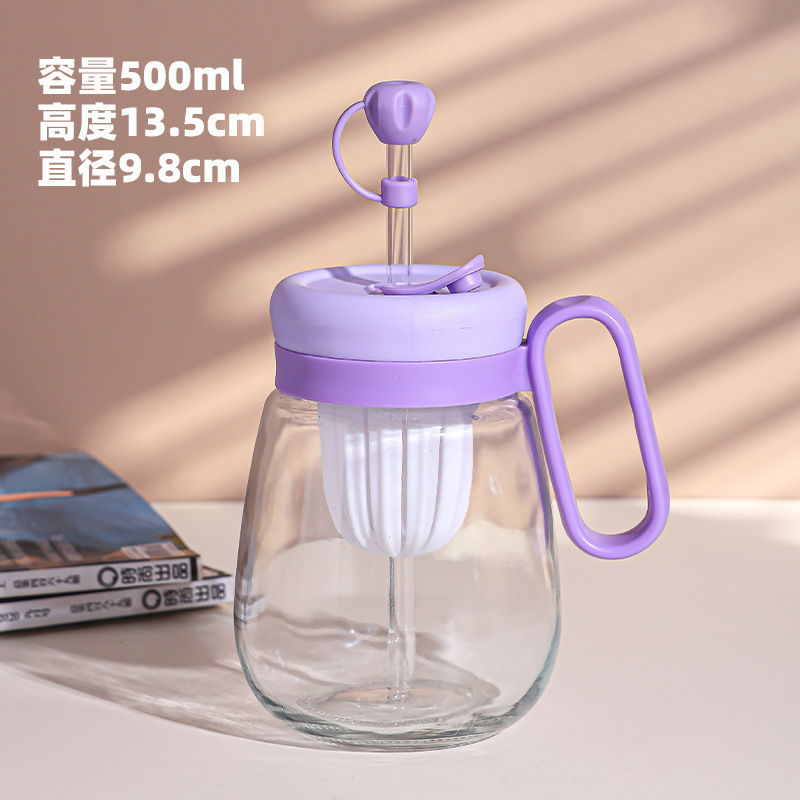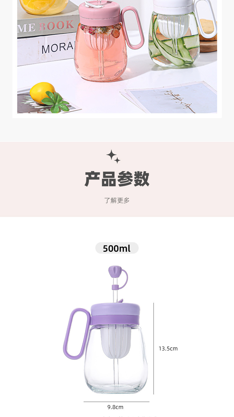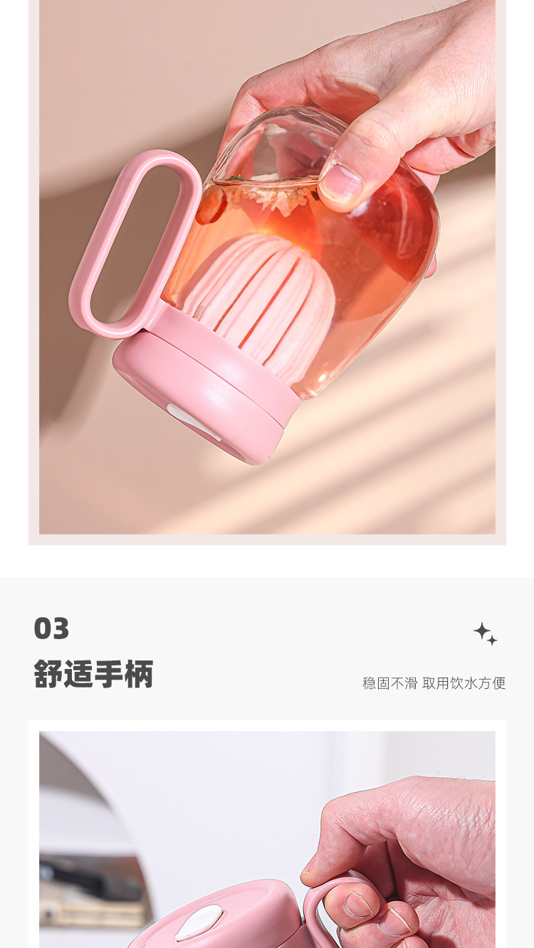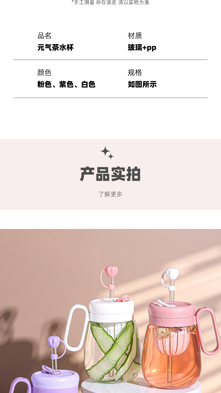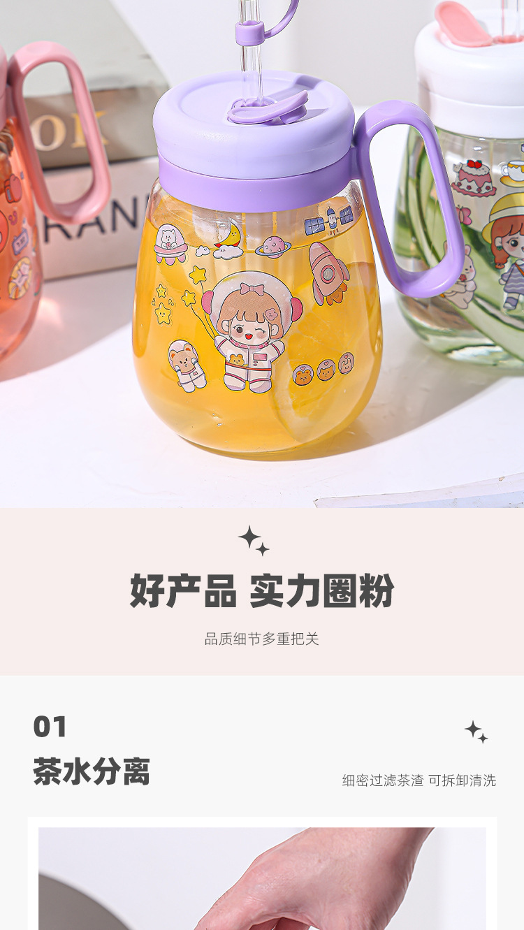 새로운 고 가치 소녀 휴대용 차 분리 컵 큰 용량 핸들 유리 흡입 튜브 컵 지상 푸시 선물 컵
