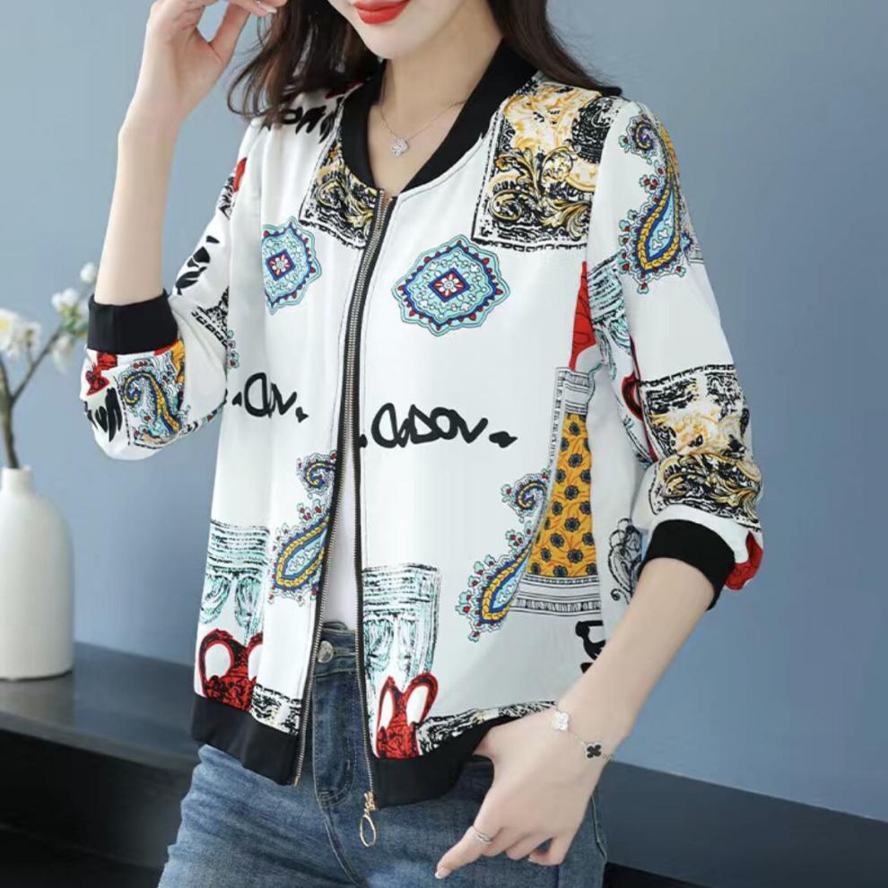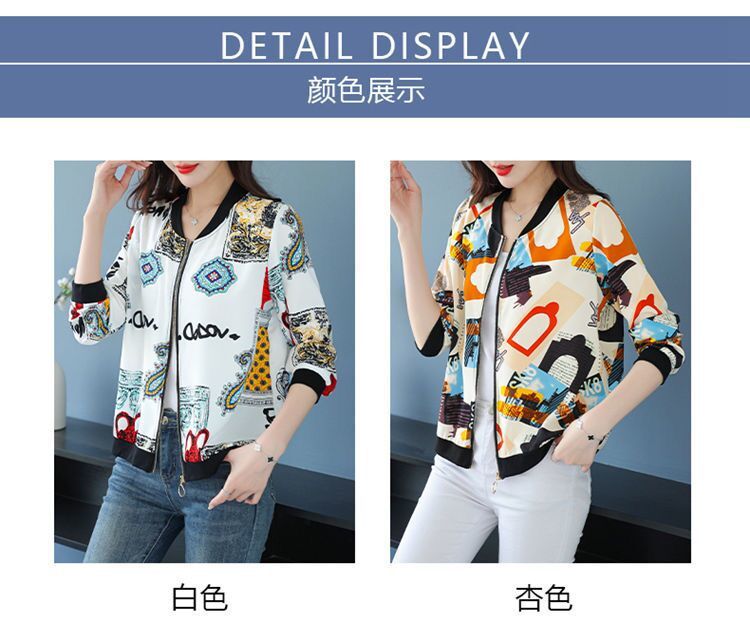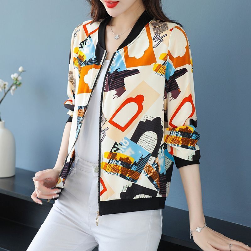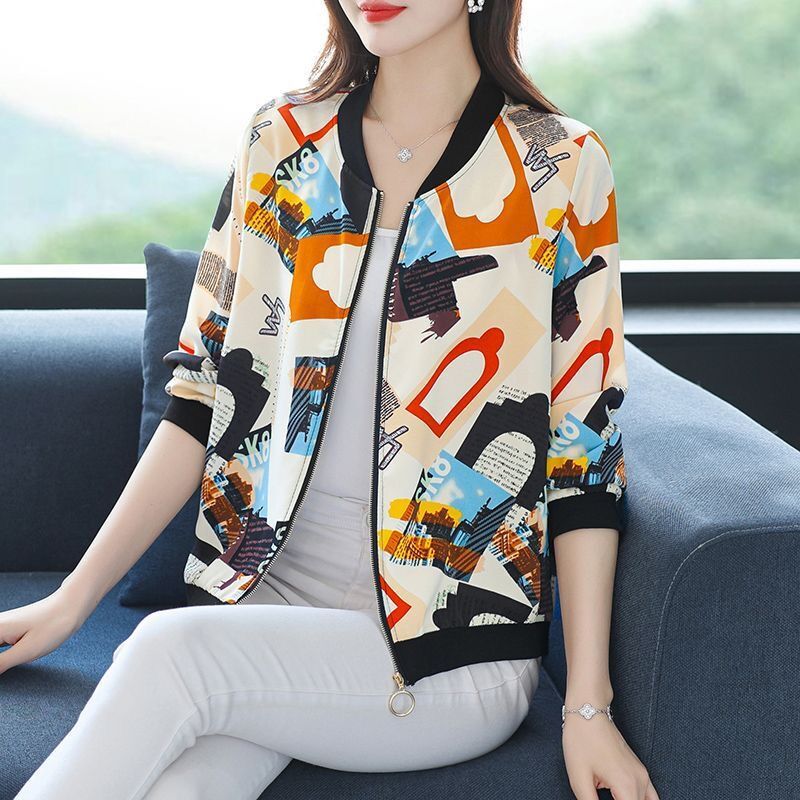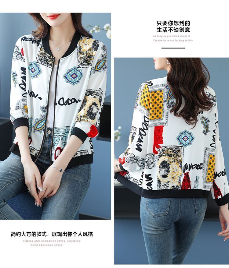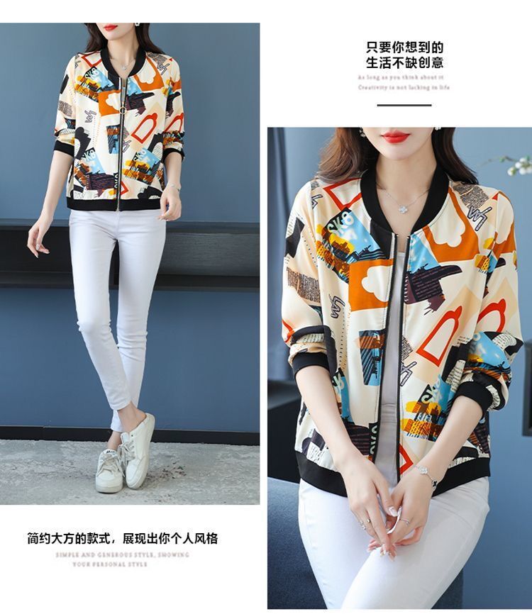 플러스 사이즈 쉬폰 태양 보호 의류 여성 인쇄 캐주얼 쇼트 코트 여름 지퍼 야구 의류 여성용 긴팔 태양 보호 셔츠