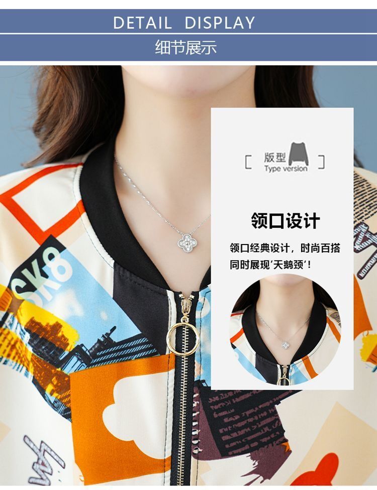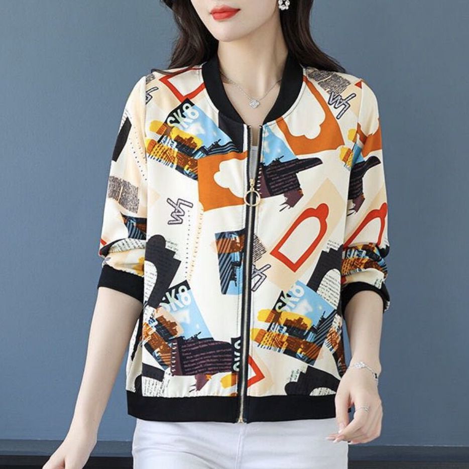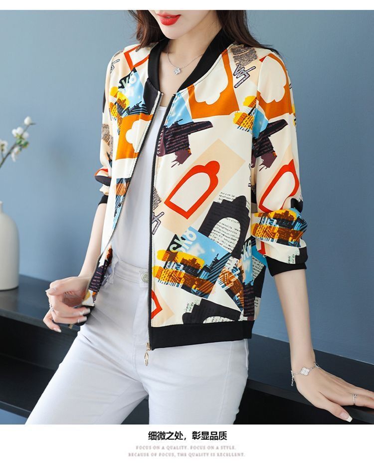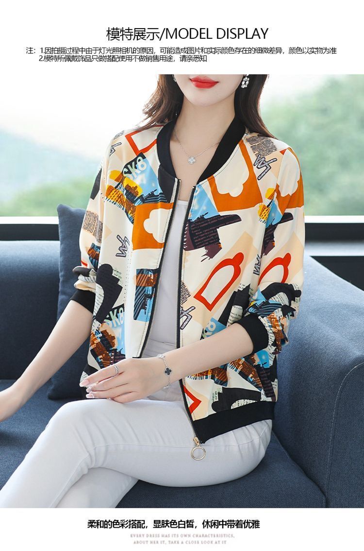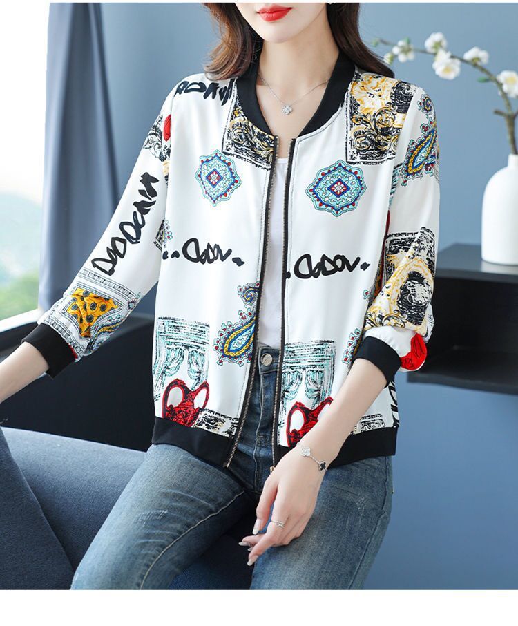 플러스 사이즈 쉬폰 태양 보호 의류 여성 인쇄 캐주얼 쇼트 코트 여름 지퍼 야구 의류 여성용 긴팔 태양 보호 셔츠
