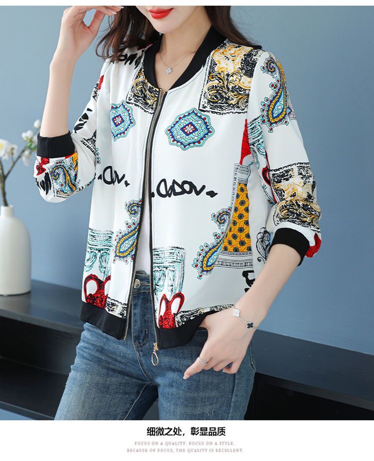 플러스 사이즈 쉬폰 태양 보호 의류 여성 인쇄 캐주얼 쇼트 코트 여름 지퍼 야구 의류 여성용 긴팔 태양 보호 셔츠스토어 가기