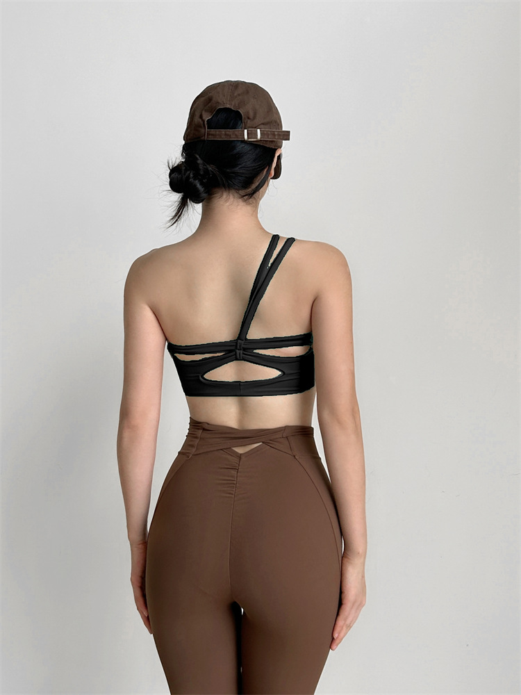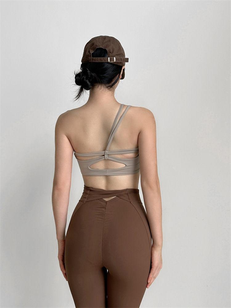 싱글 숄더 스트랩 아름다운 백 필라테스 스포츠 속옷 여성 달리기 민소매 피트니스 브래지어 섹시한 요가 의류 조끼 1440