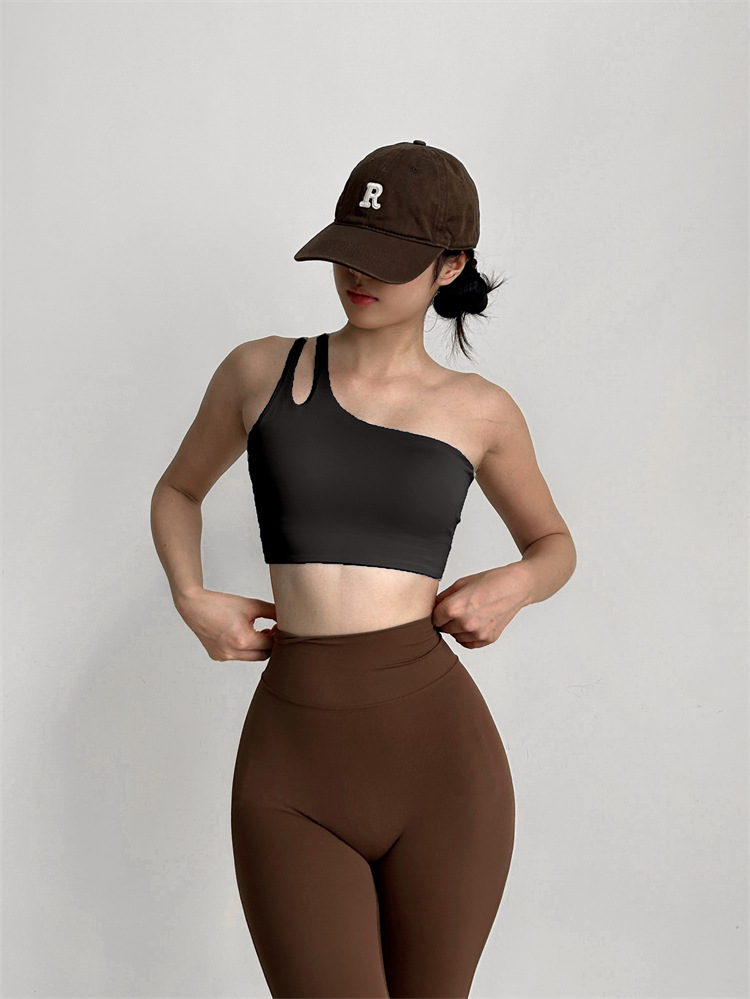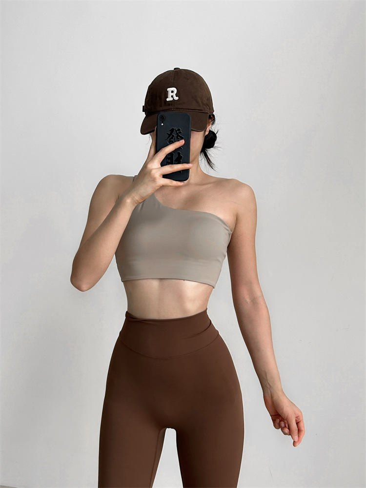 싱글 숄더 스트랩 아름다운 백 필라테스 스포츠 속옷 여성 달리기 민소매 피트니스 브래지어 섹시한 요가 의류 조끼 1440스토어 가기