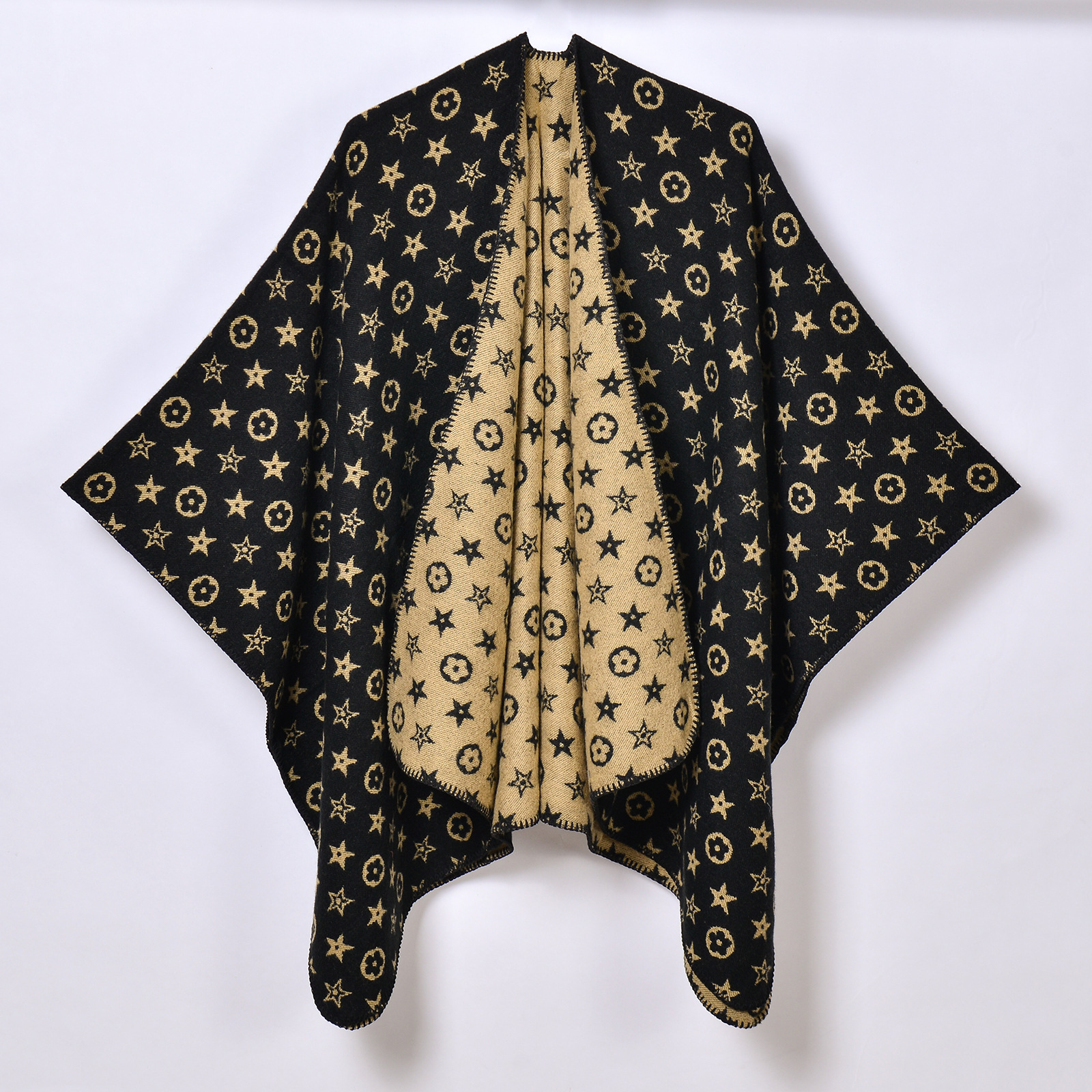 2024 년 새로운 유럽과 미국의 레트로 빅 브랜드 여성 분할 목도리 워킹 쇼 망토 외부 가을과 겨울 자카드 스카프 망토
