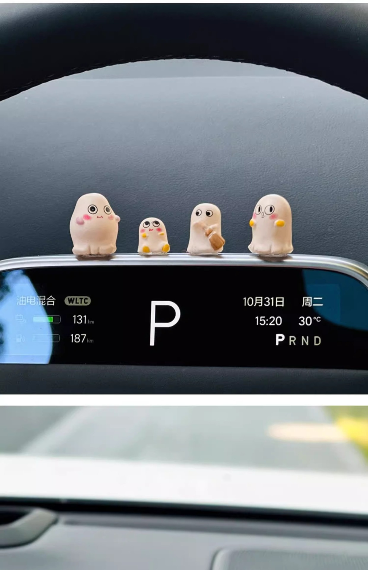 작은 유령 자동차 액세서리 장식품 귀여운 만화 자동차 중앙 콘솔 자동차 화면 거짓말 경향이있는 자동차 인터넷 연예인 장식