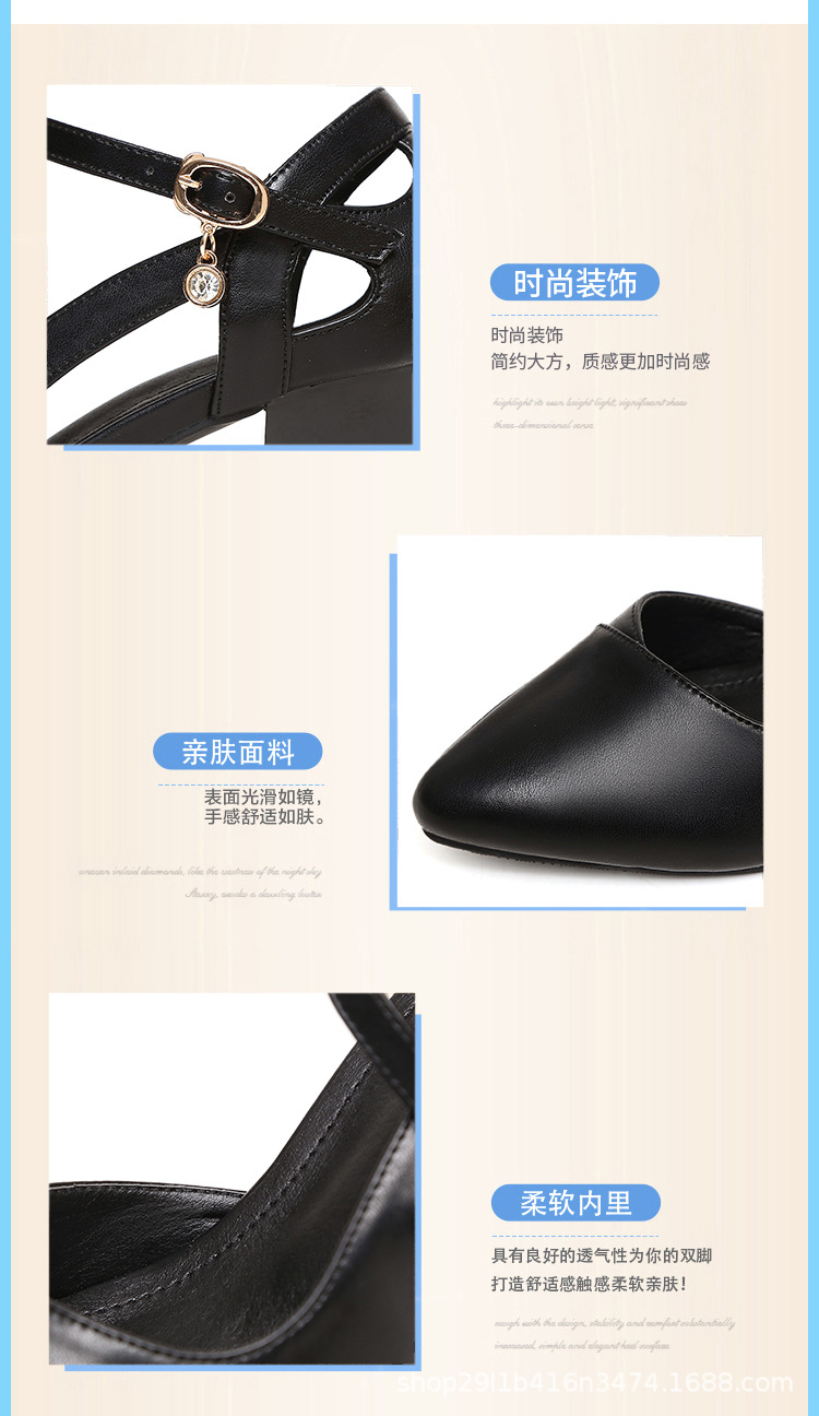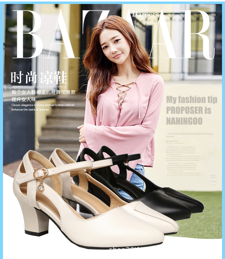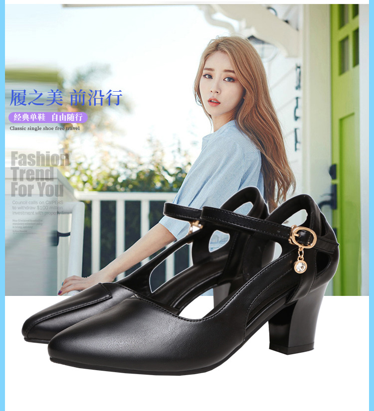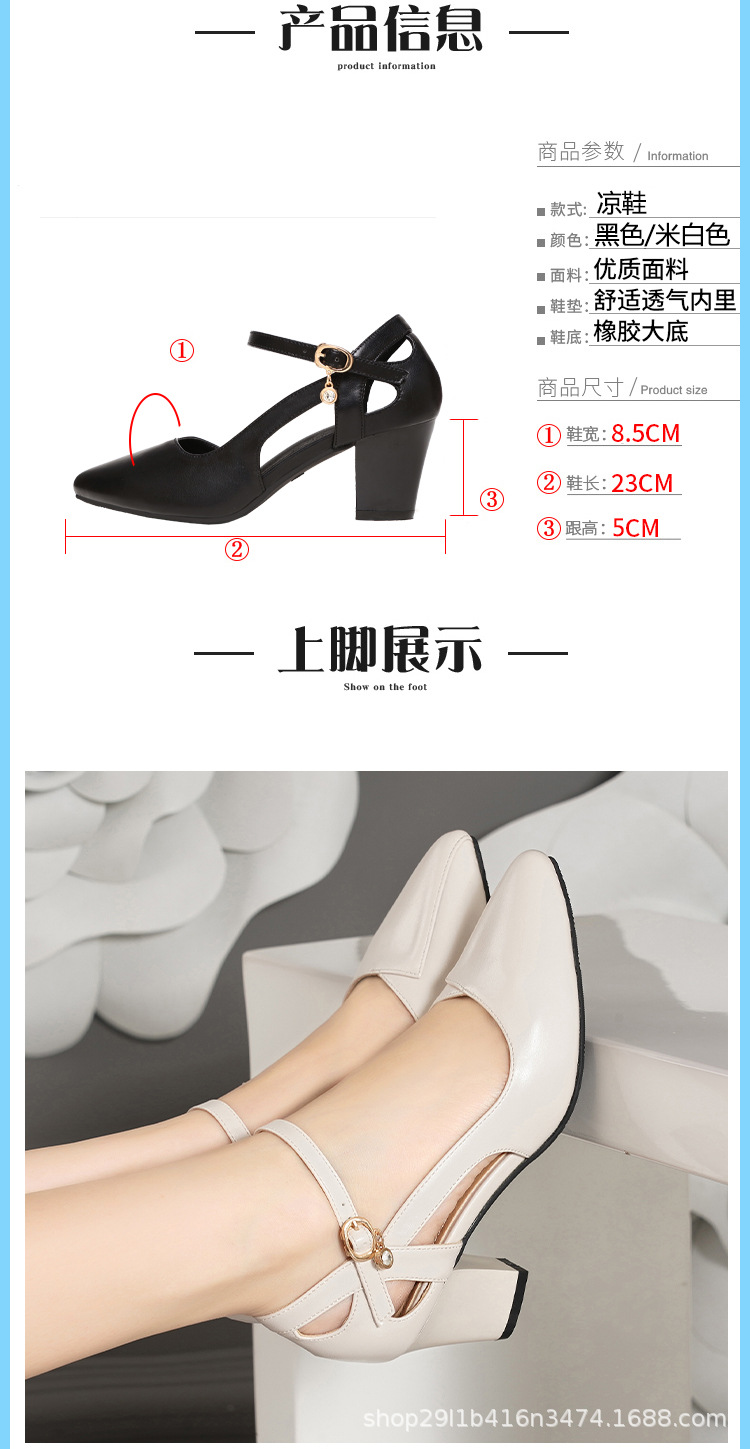 2024 새로운 올 매치 원라인 할로우 하이힐 싱글 레이어 신발 여성용 두꺼운 힐 캐주얼 포인팅 미드 힐 플러스 사이즈 샌들스토어 가기