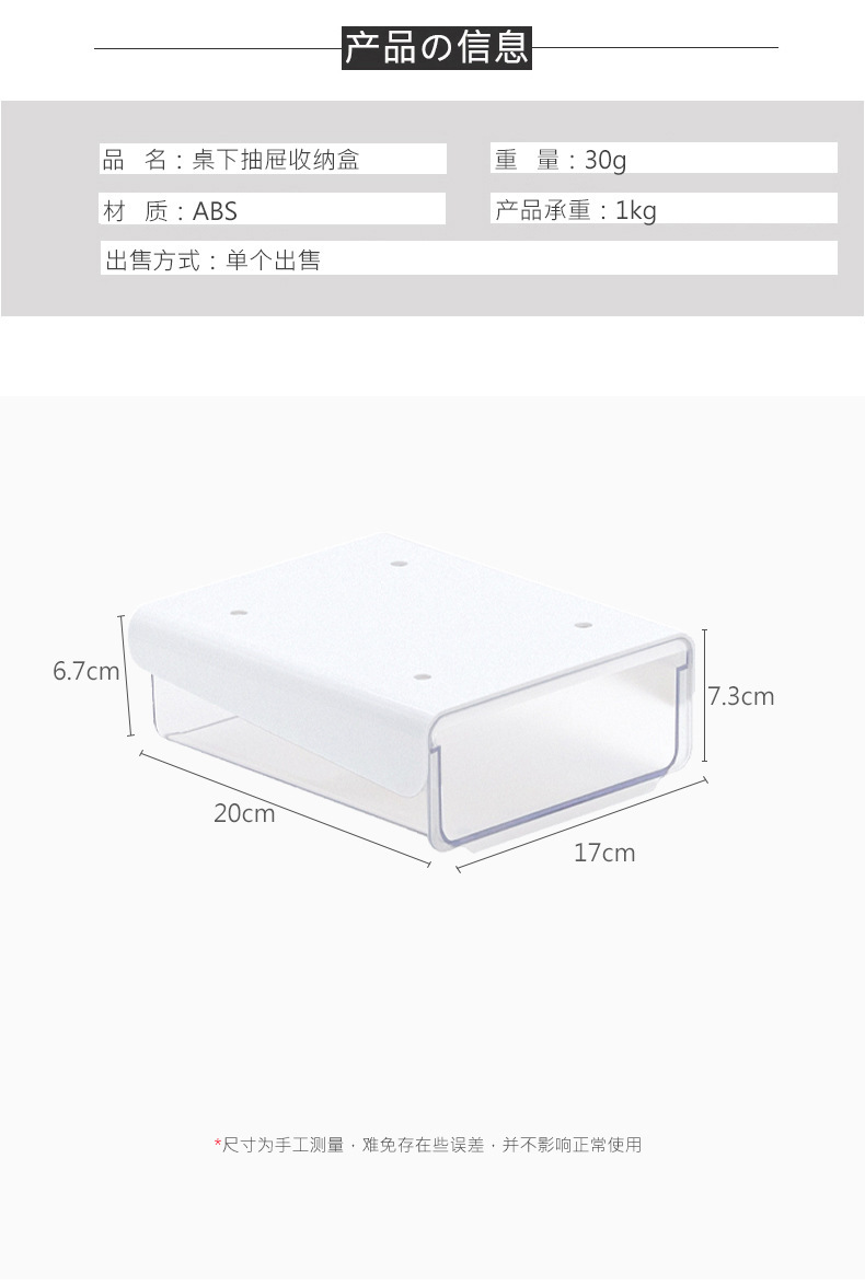 抽屉收纳盒:23*19*8cm,重量360g