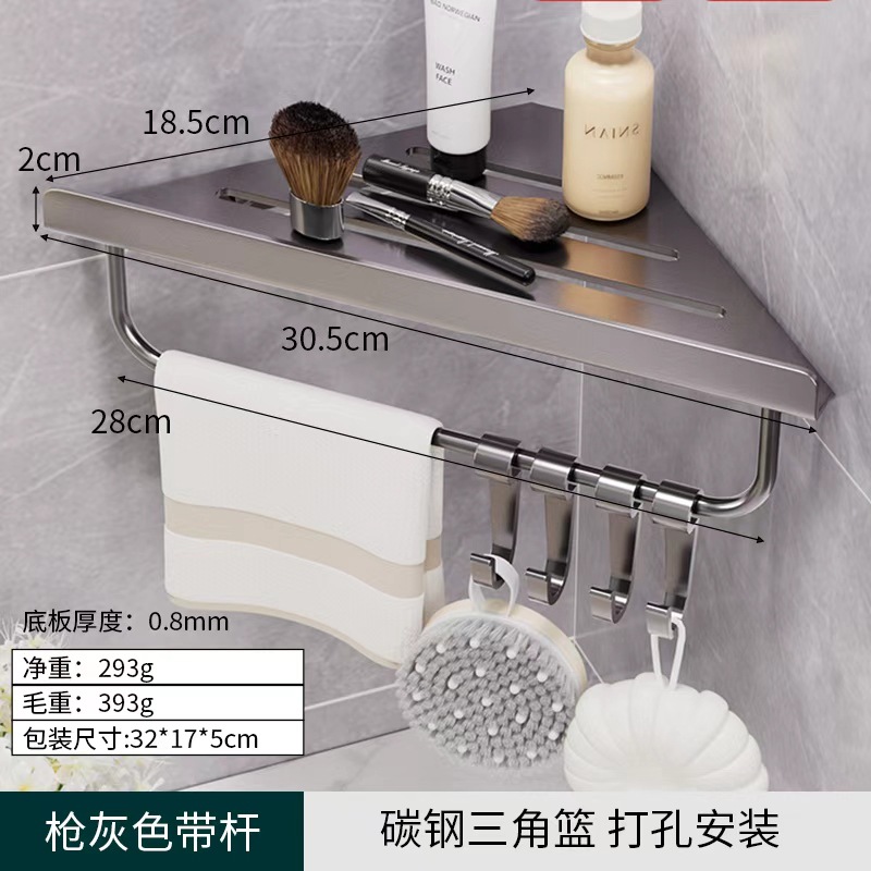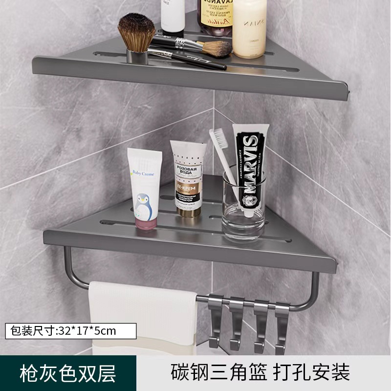 욕실 펀치가없는 삼각대 탄소 강철 선반 호텔 벽걸이 중공 코너 화장품 보관 랙 도매스토어 가기