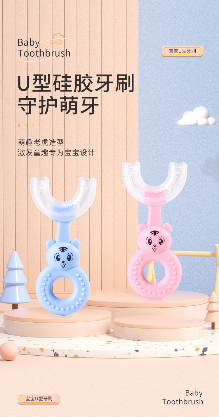 어린이 U 자형 부드러운 강모 칫솔 아기 1-2-3-4-6-8-10-12 반 어린 이용 U 자형 매뉴얼