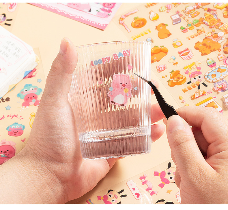 카피 발라 투명 방수 애완 동물 스티커 DIY 손 계정 일기 장식 문구 스티커 샤오 지방 다 투두 자매 스티커