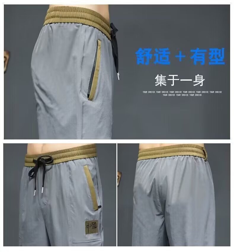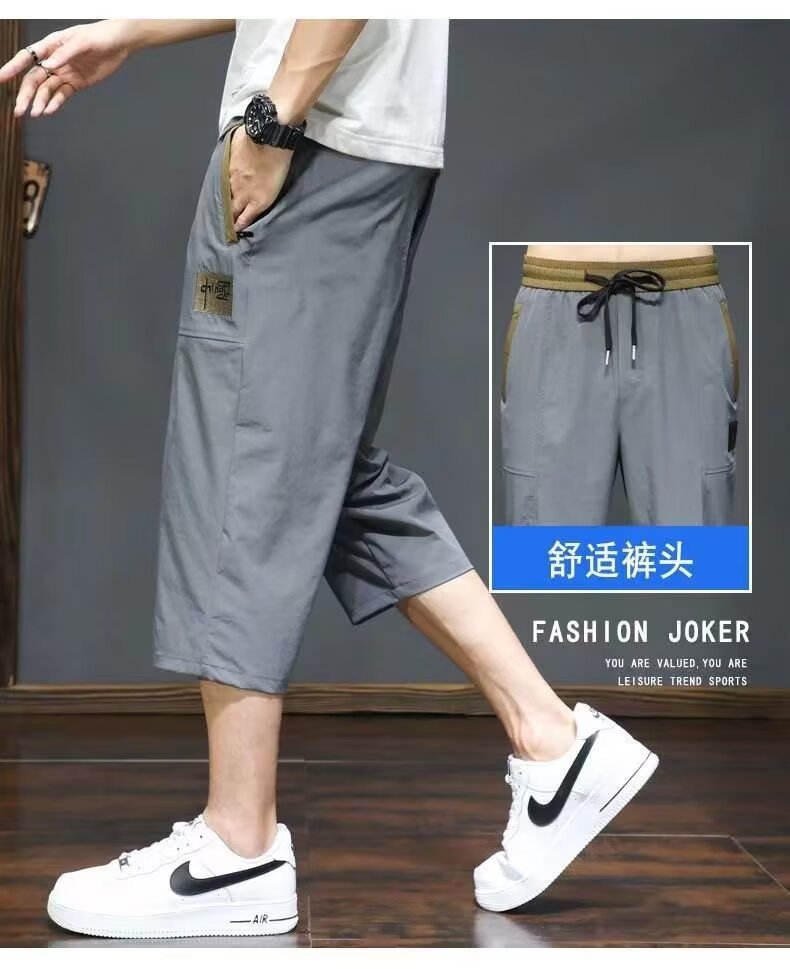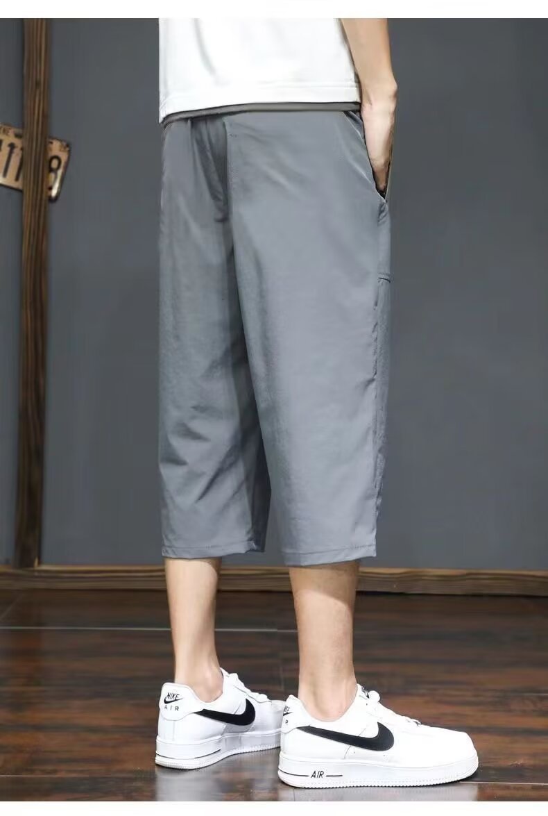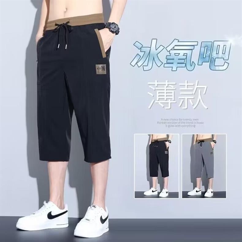 제조 업체 도매 2024 여름 새로운 얼음 실크 카프리 남성 초박형 속건성 통기성 캐주얼 바지 트렌디 중국 표준스토어 가기
