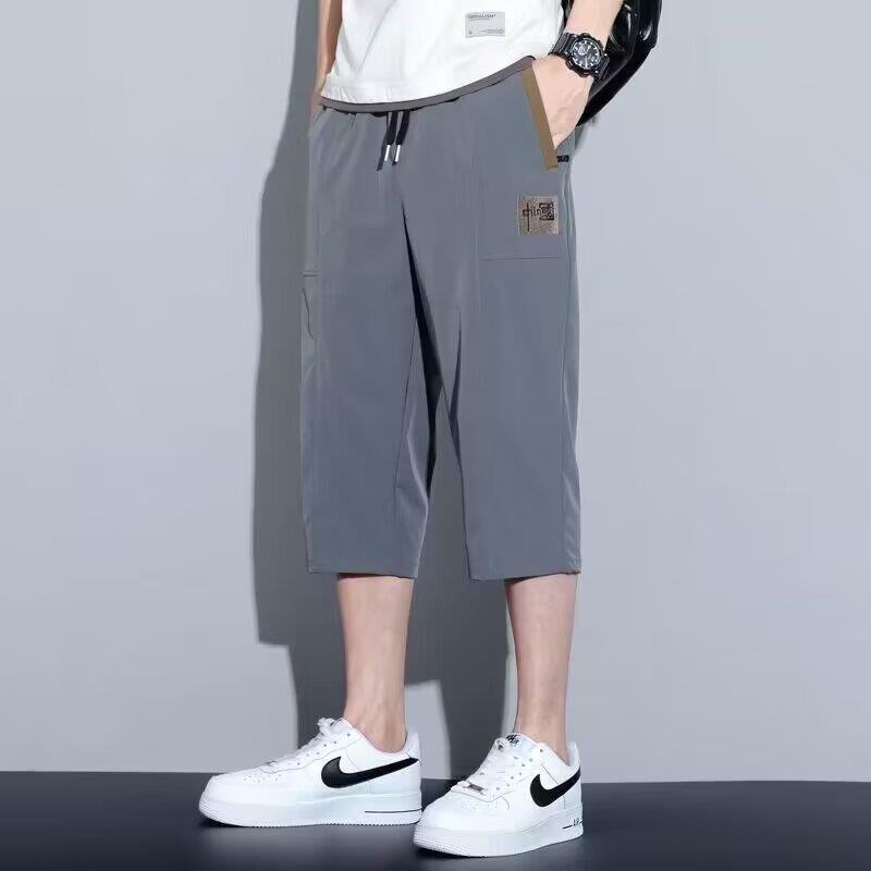 제조 업체 도매 2024 여름 새로운 얼음 실크 카프리 남성 초박형 속건성 통기성 캐주얼 바지 트렌디 중국 표준