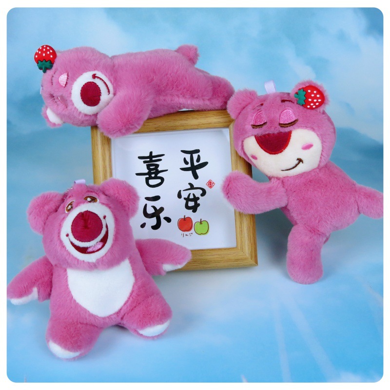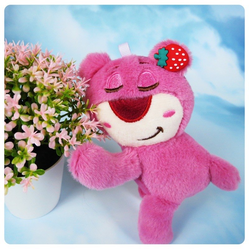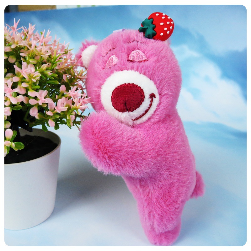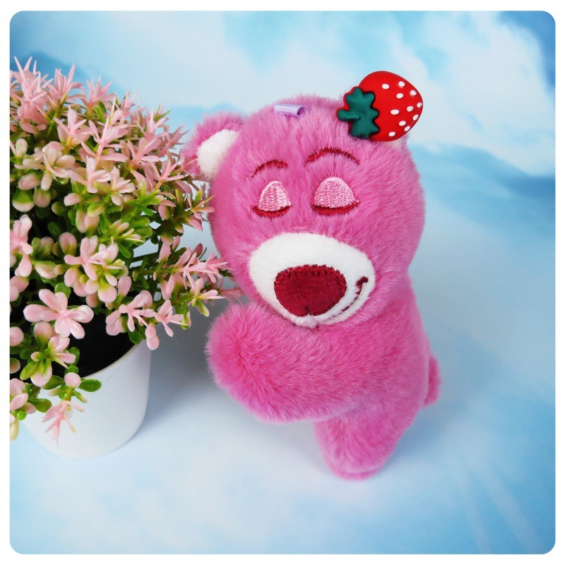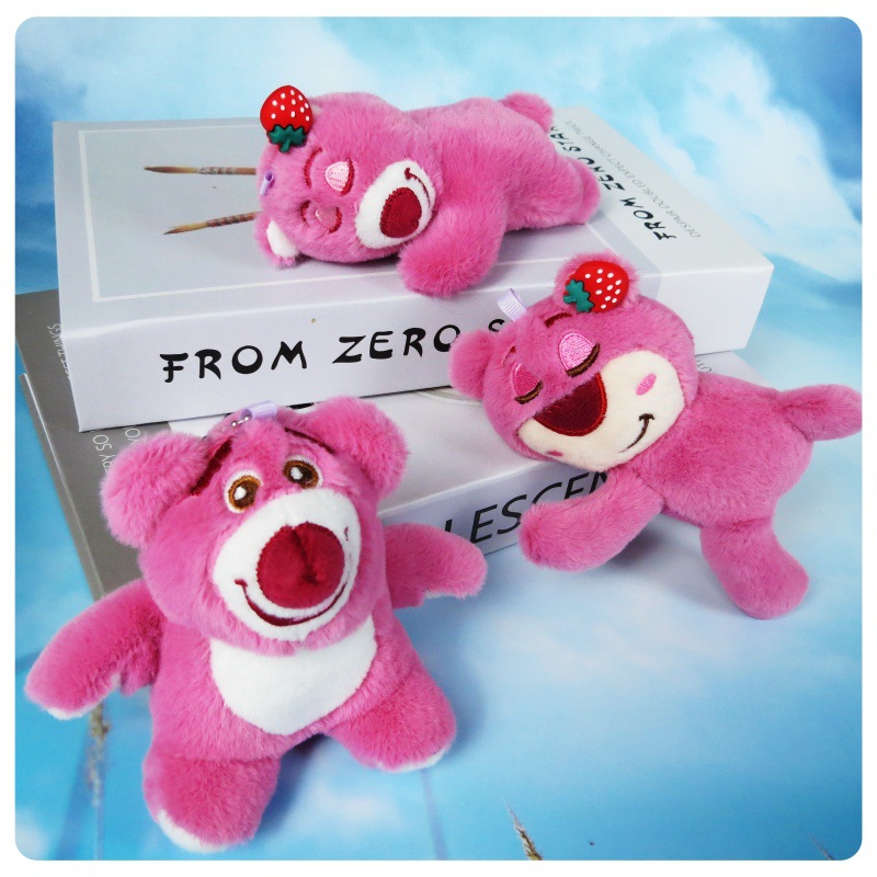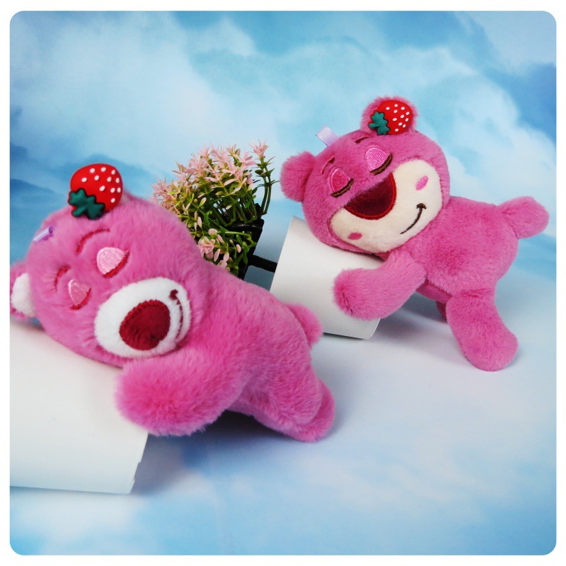 슈퍼 귀여운 딸기 곰 봉제 장난감 펜던트 키 체인 거짓말 자세 딸기 곰 인형 가방 만화 장식품스토어 가기