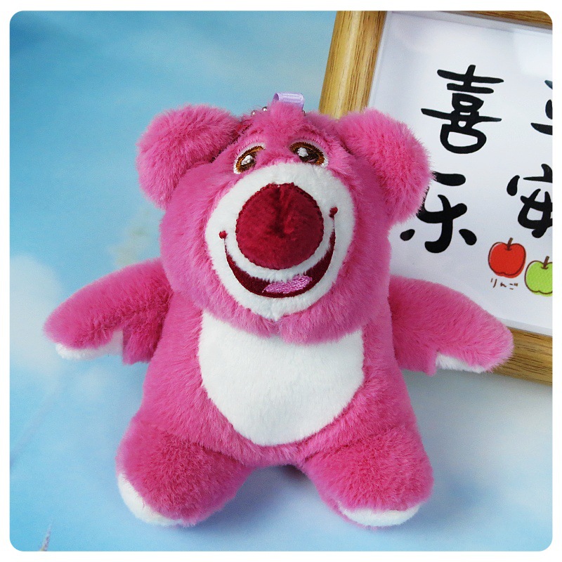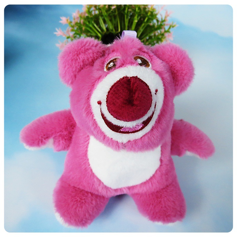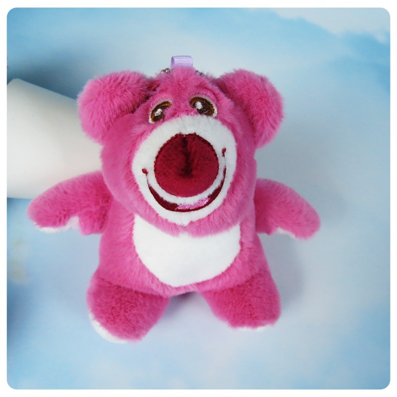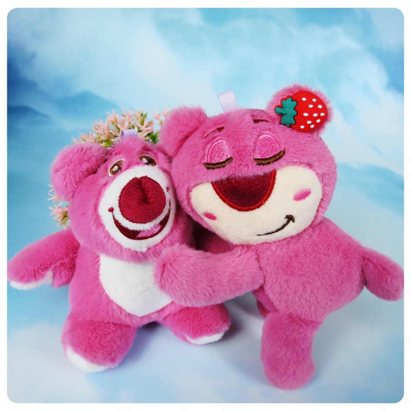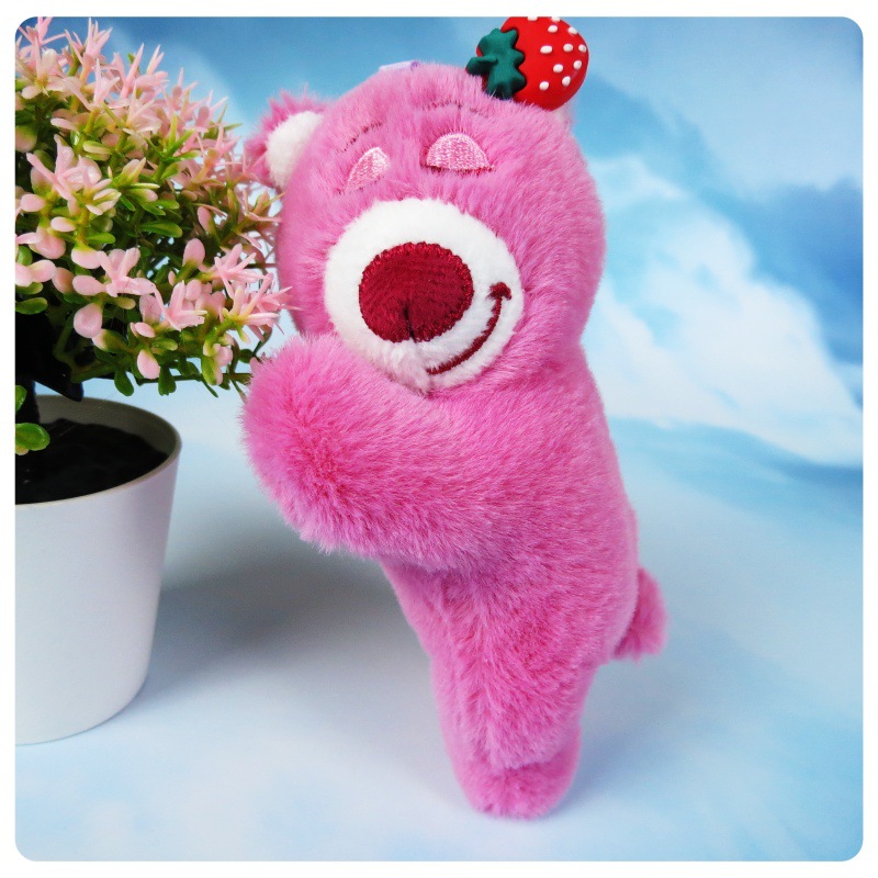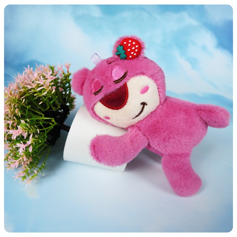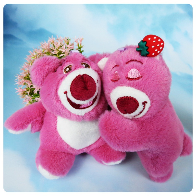 슈퍼 귀여운 딸기 곰 봉제 장난감 펜던트 키 체인 거짓말 자세 딸기 곰 인형 가방 만화 장식품스토어 가기