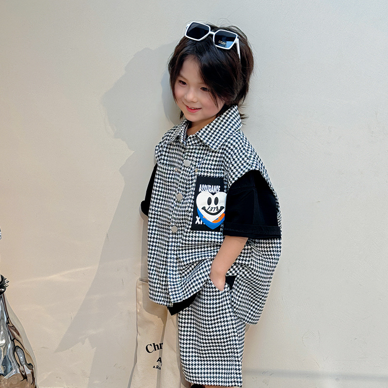 남학생 조끼 반바지 투피스 세트 2024 여름 신작 중대형 소년 핸섬 클래식 하운드 세트스토어 가기