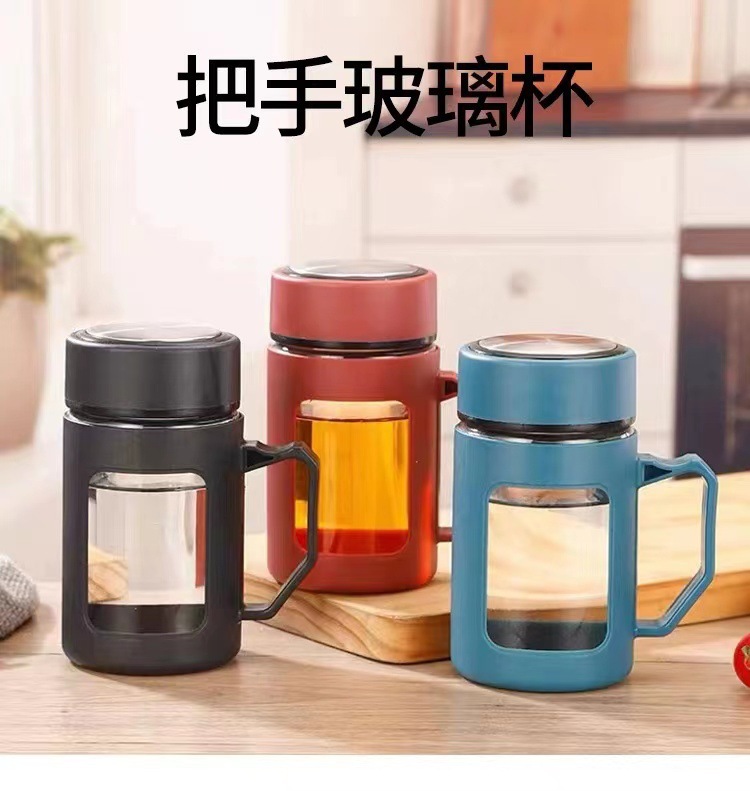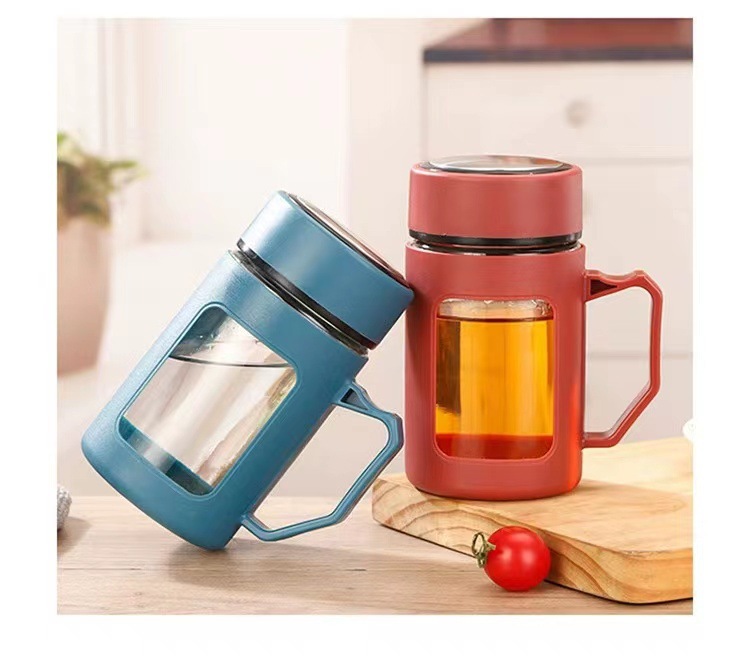 새로운 창조적 인 핸들 비즈니스 컵 홈 오피스 티 컵 내열 플라스틱 쉘 유리 컵 푸시는 로고를 인쇄 할 수 있습니다스토어 가기