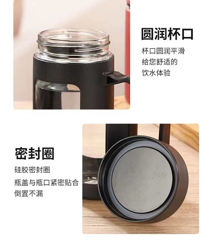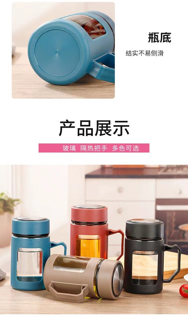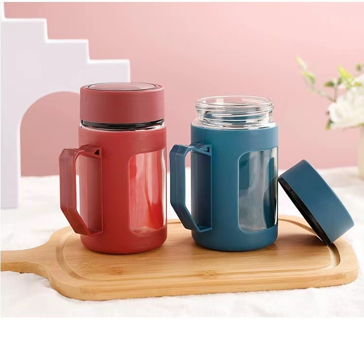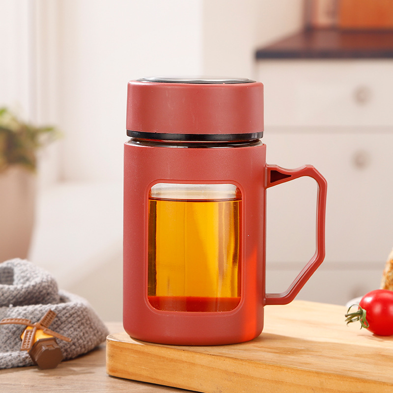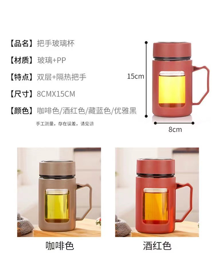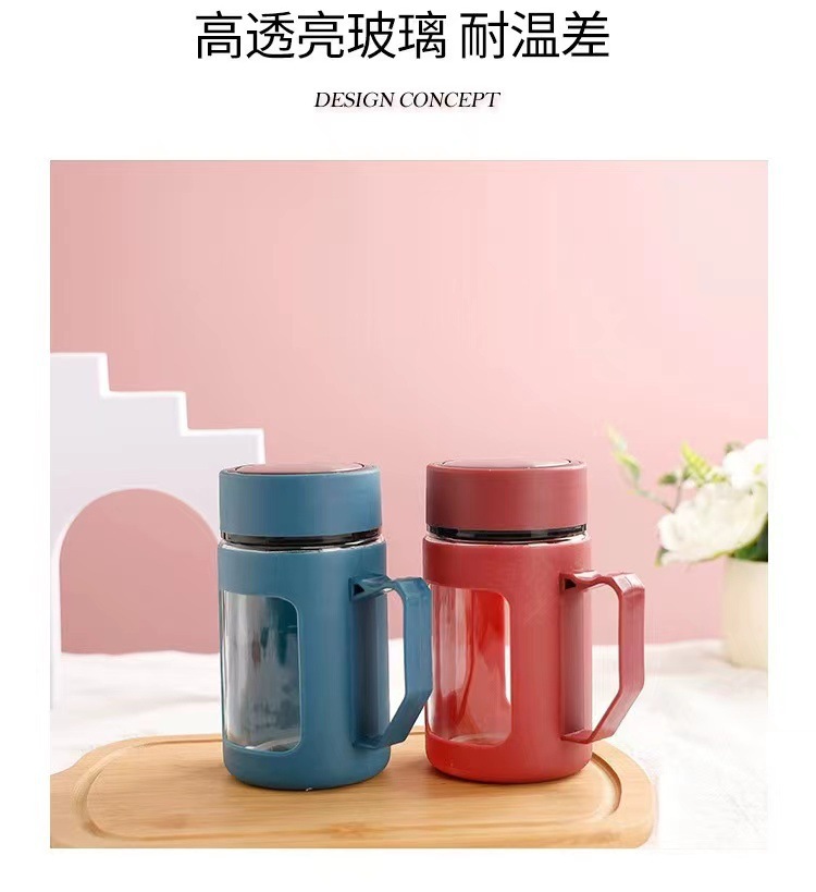 새로운 창조적 인 핸들 비즈니스 컵 홈 오피스 티 컵 내열 플라스틱 쉘 유리 컵 푸시는 로고를 인쇄 할 수 있습니다