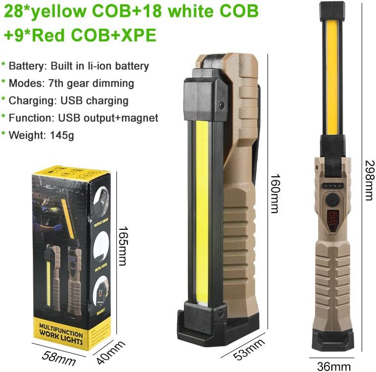 다기능 작업 램프 USB 충전 양면 COB 접이식 강한 자석 강한 빛 비상 손전등 검사 램프