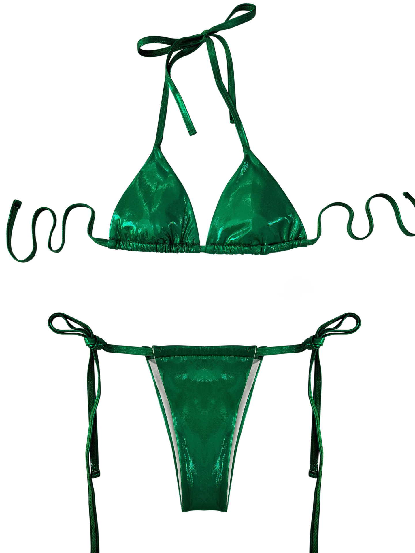 2025 유럽과 미국의 핫 스탬핑 3 피스 비키니 솔리드 컬러 메탈 섹시한 여성 스플릿 수영복 삼각형 패키지 수영복스토어 가기