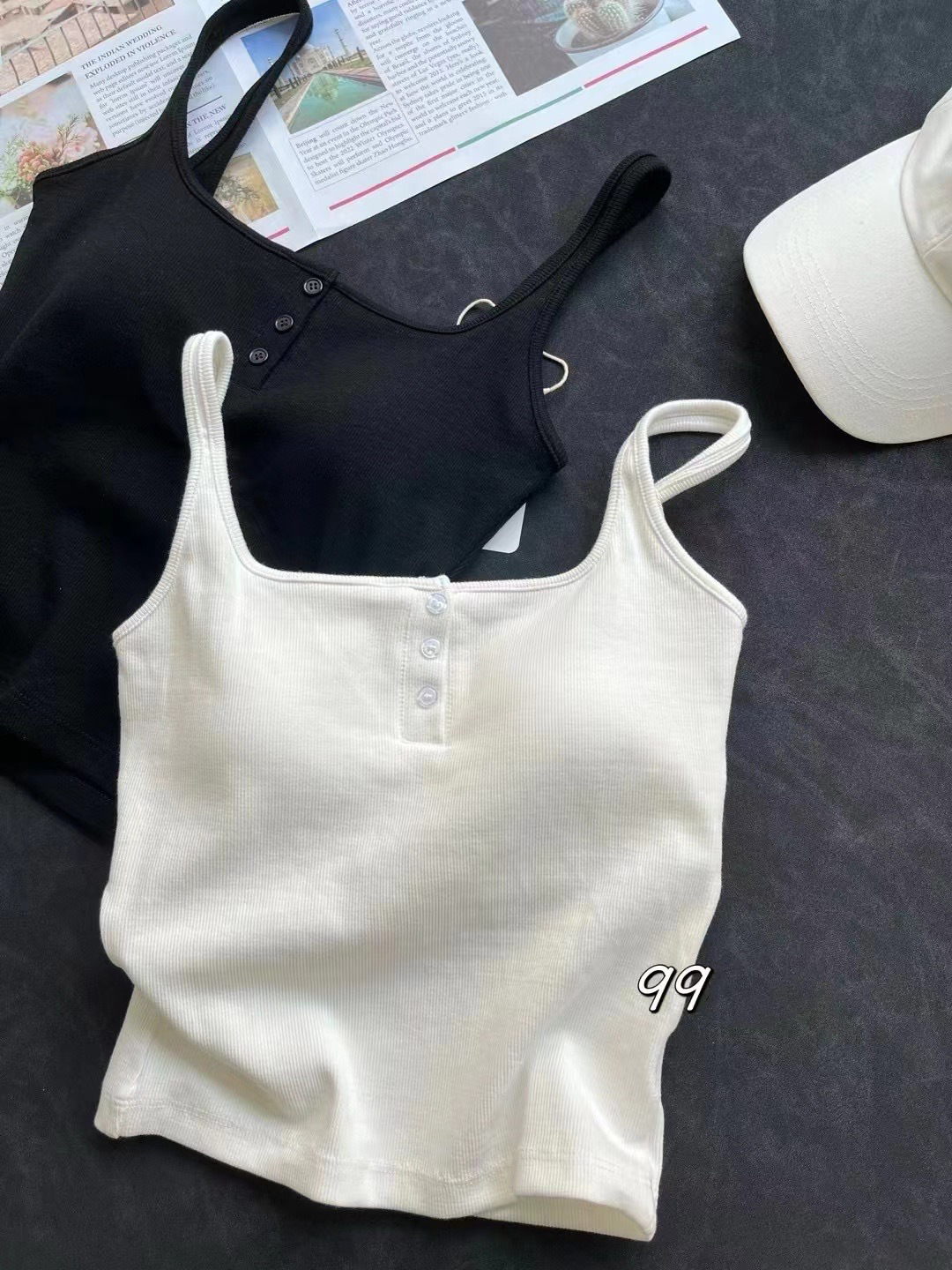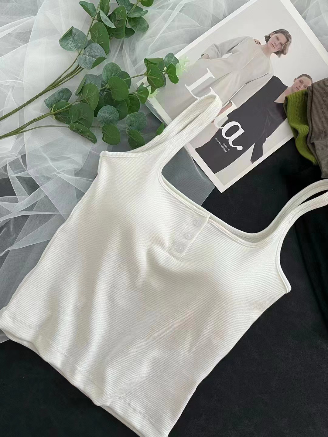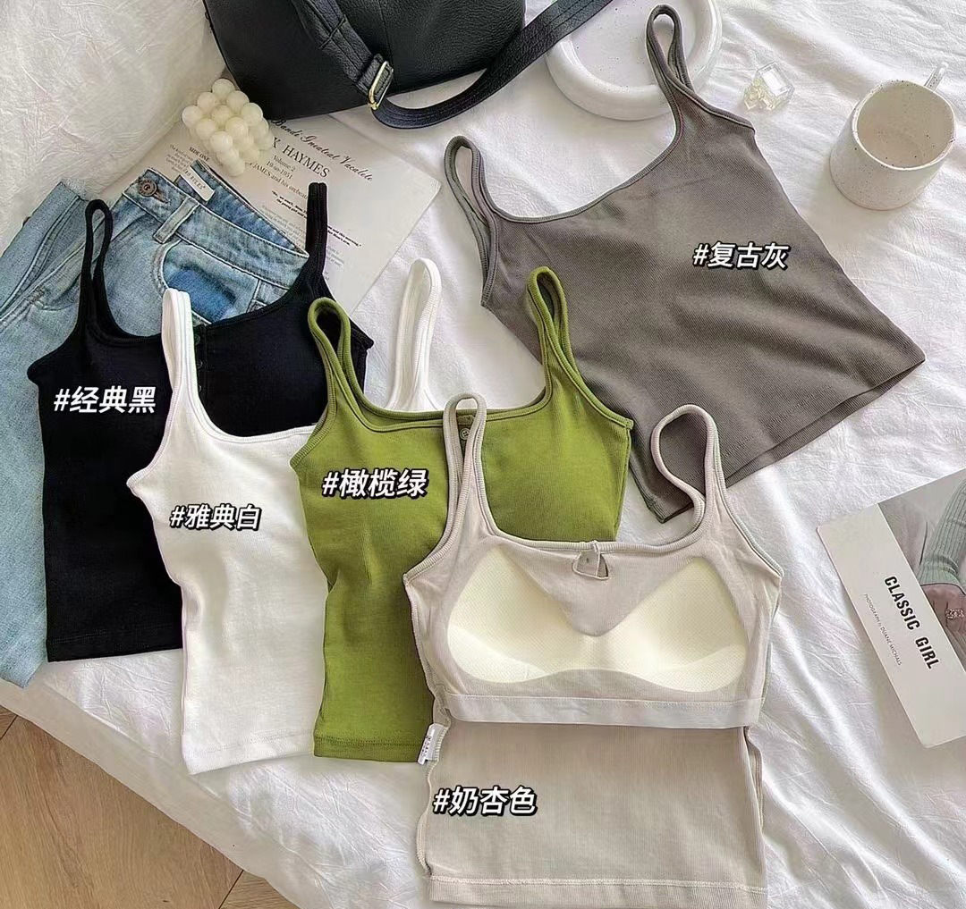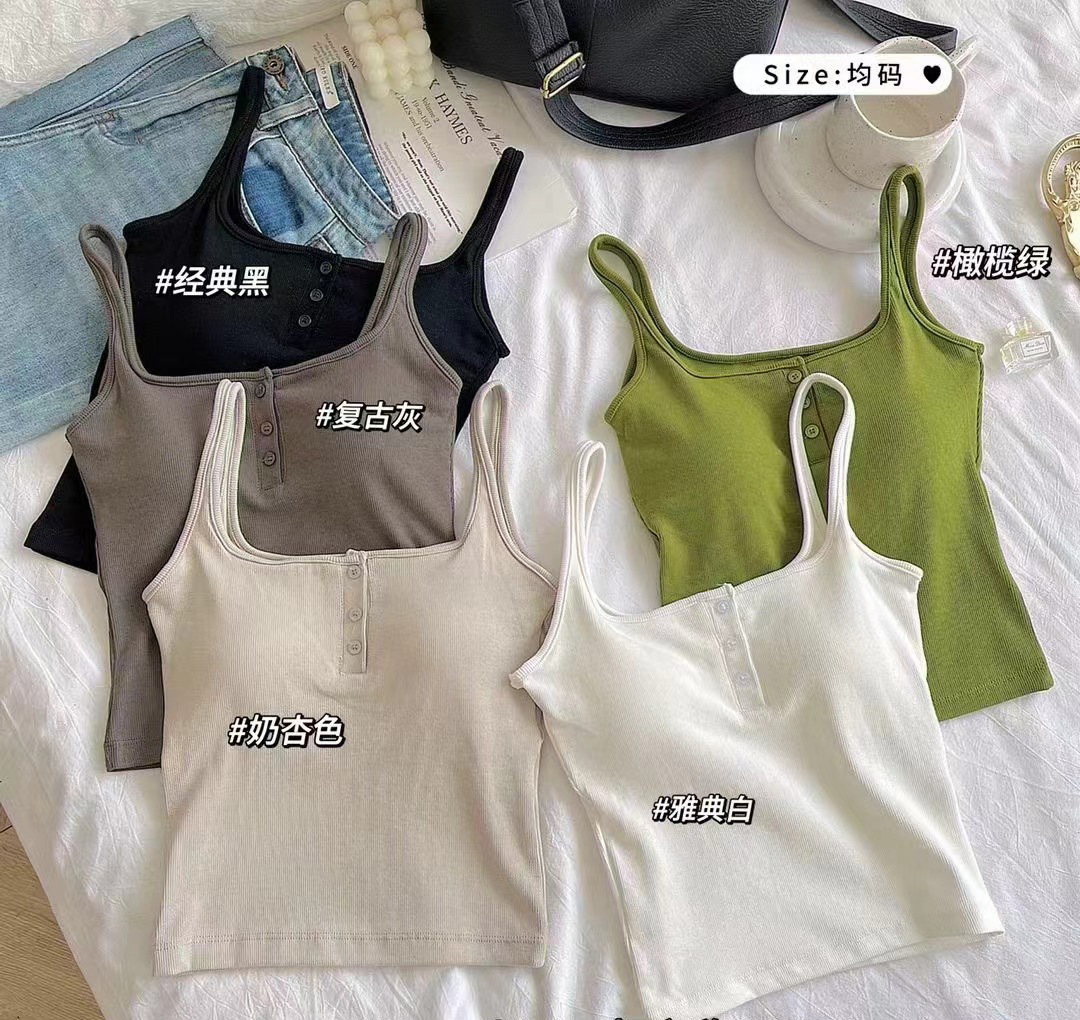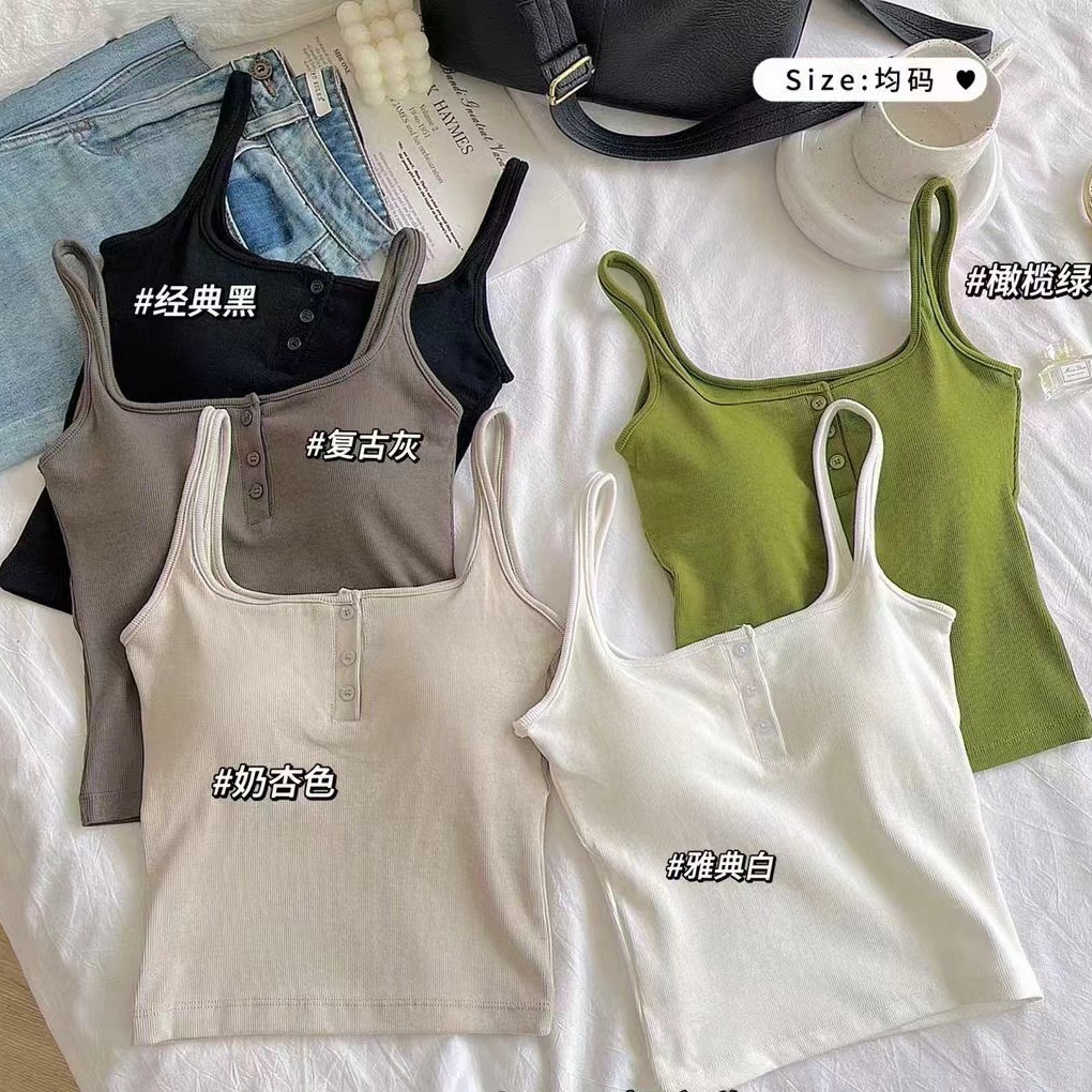 여름 스레드 스퀘어 칼라 버튼 장식 원피스 컵 조끼 여자 외부 착용 모든 경기 내부 유방 커버 탑스토어 가기