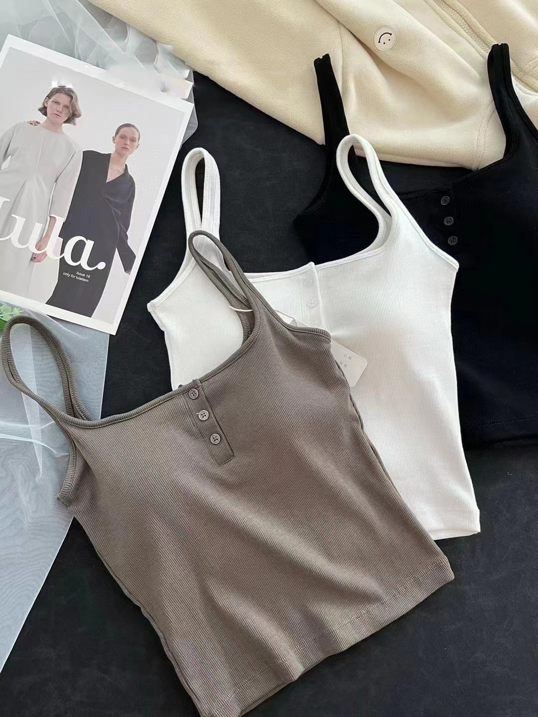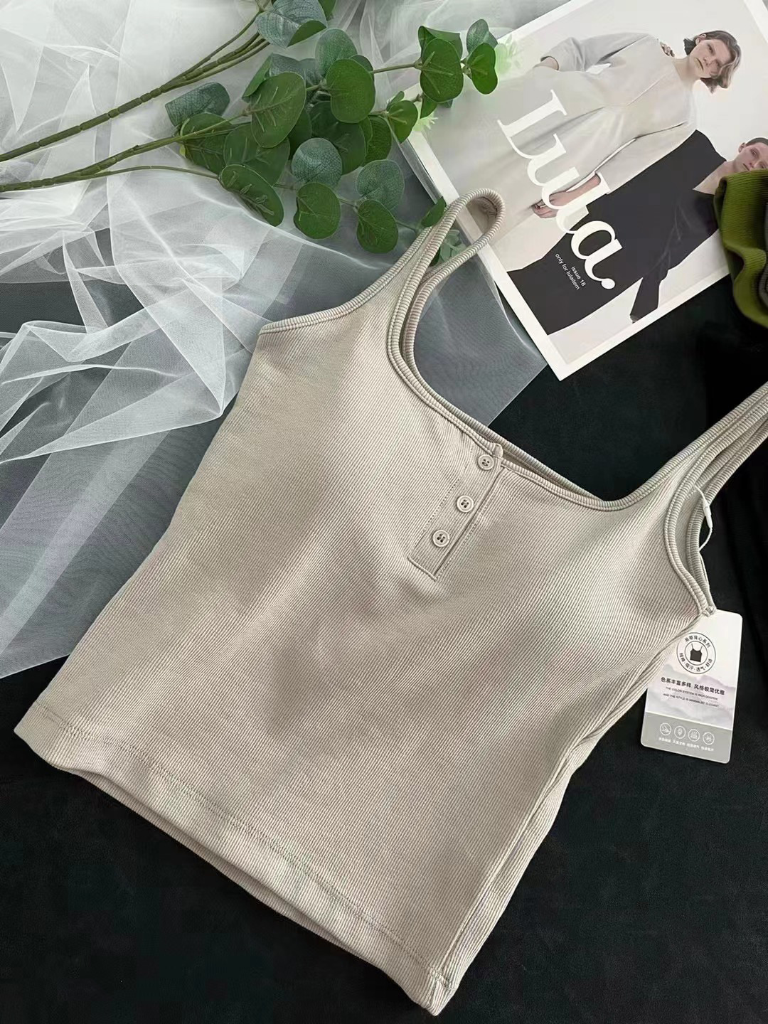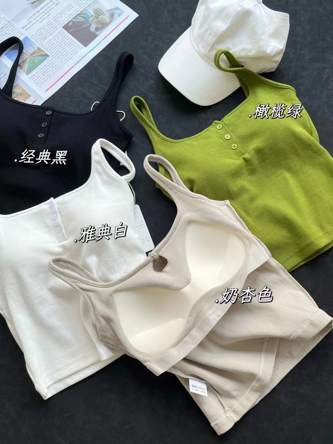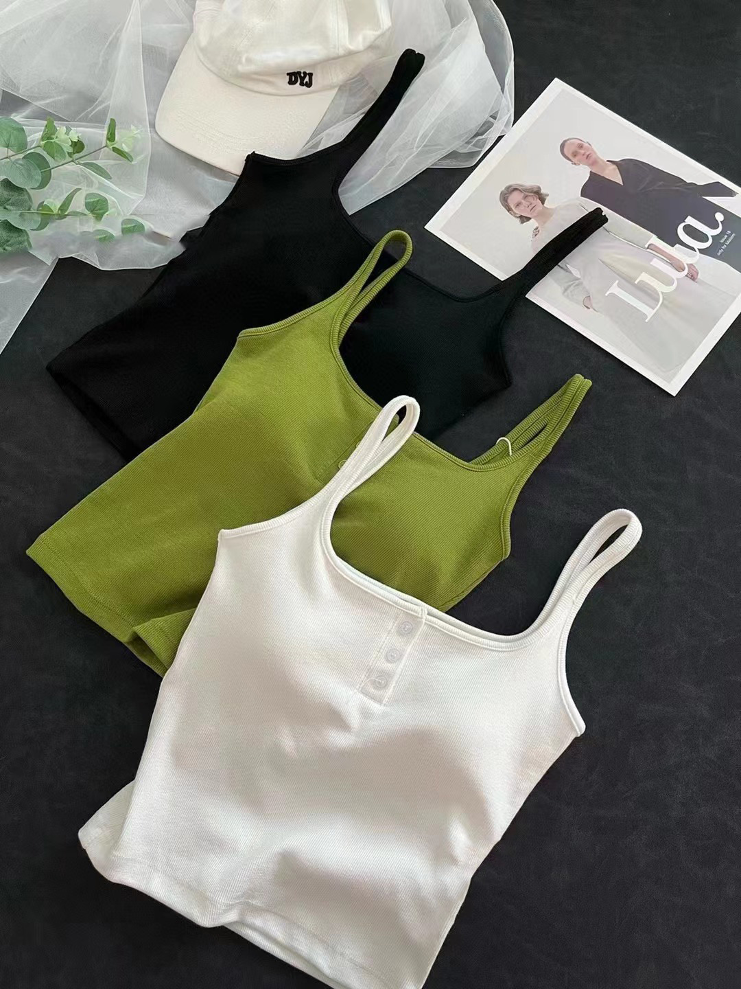 여름 스레드 스퀘어 칼라 버튼 장식 원피스 컵 조끼 여자 외부 착용 모든 경기 내부 유방 커버 탑스토어 가기