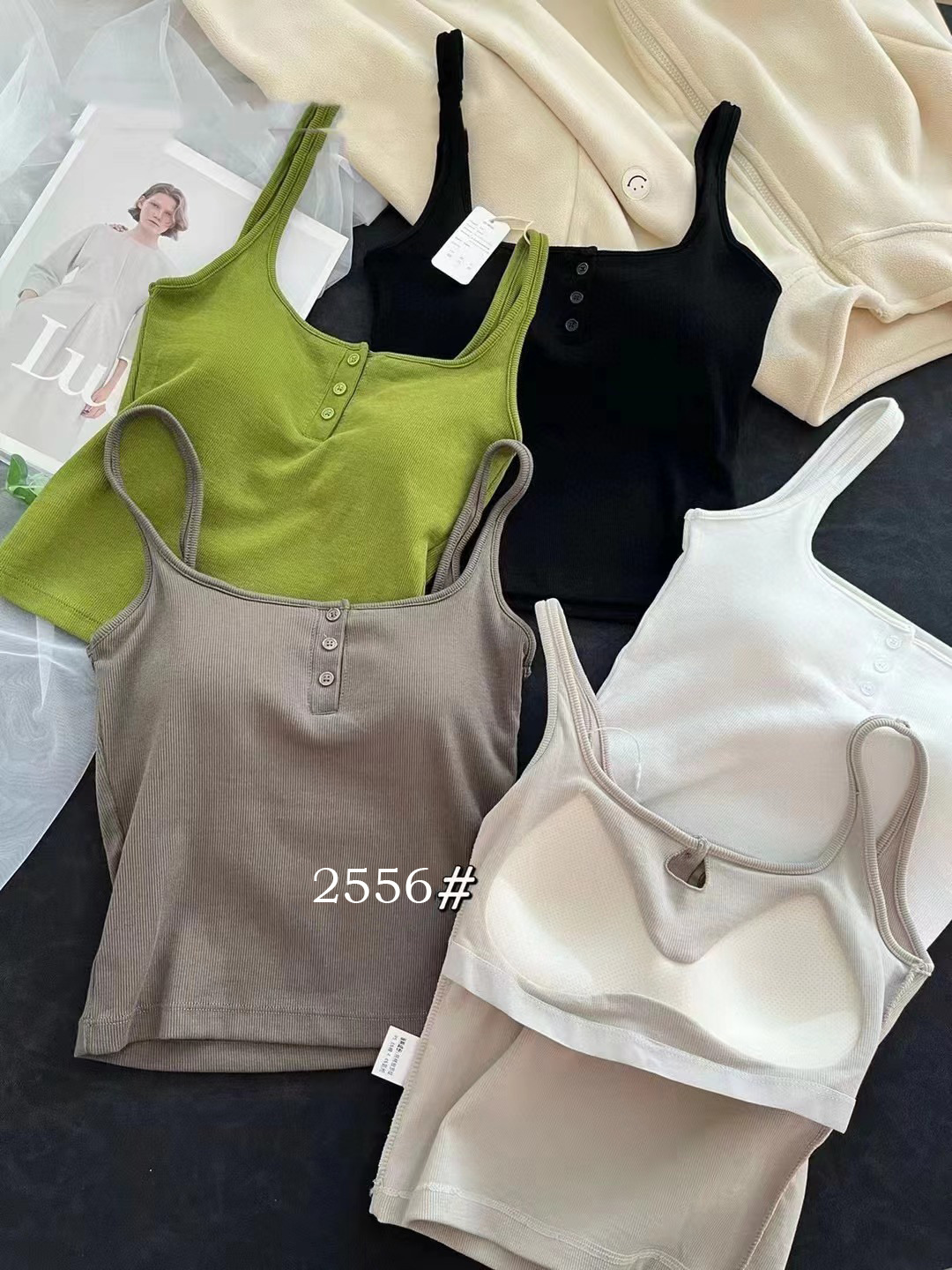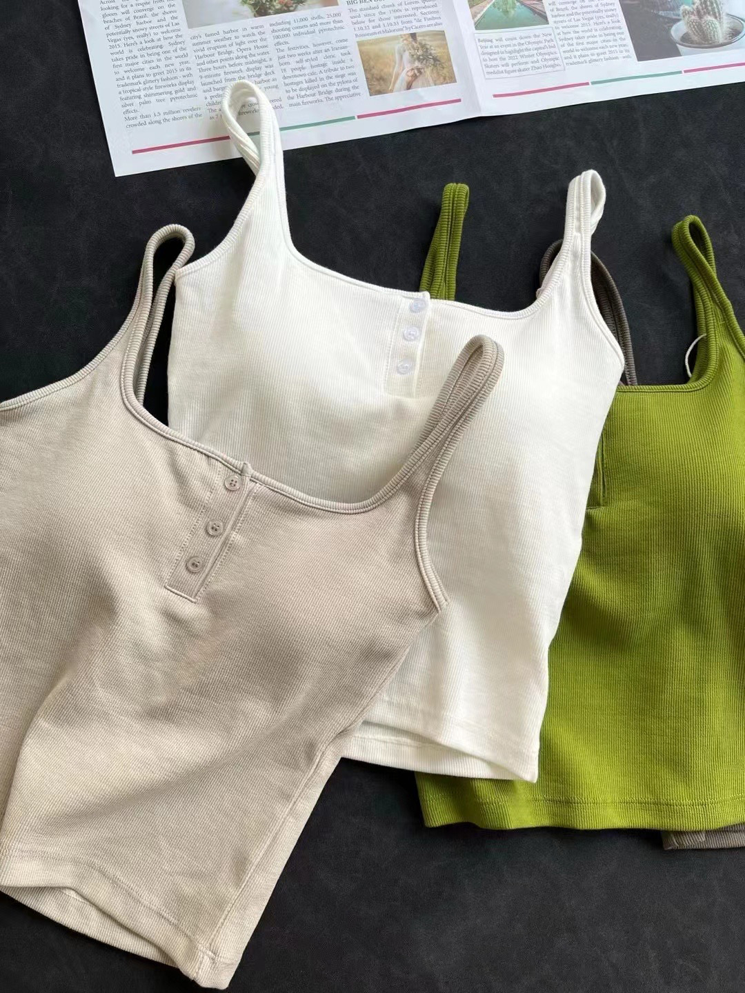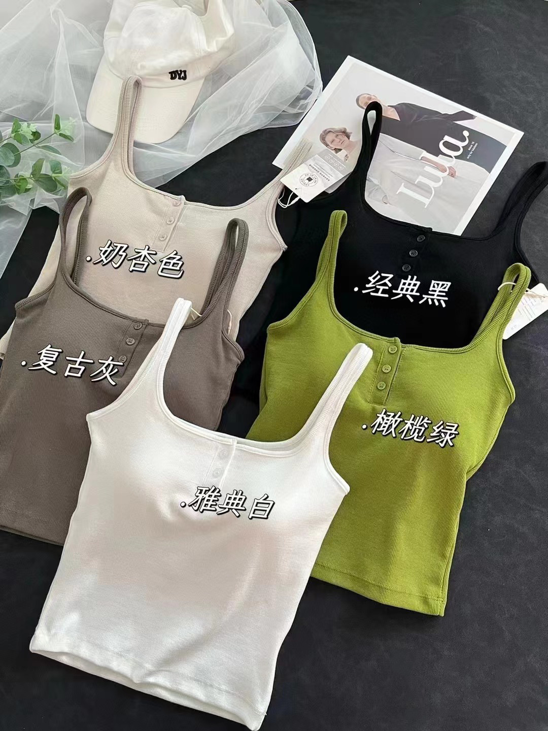 여름 스레드 스퀘어 칼라 버튼 장식 원피스 컵 조끼 여자 외부 착용 모든 경기 내부 유방 커버 탑