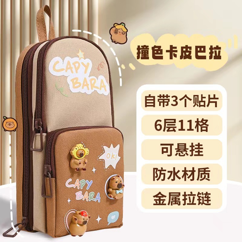 국경 간 필통 대용량 더블 레이어 더블 창 문구 가방 Kapibara 소녀 배낭 필통 틈새 시장